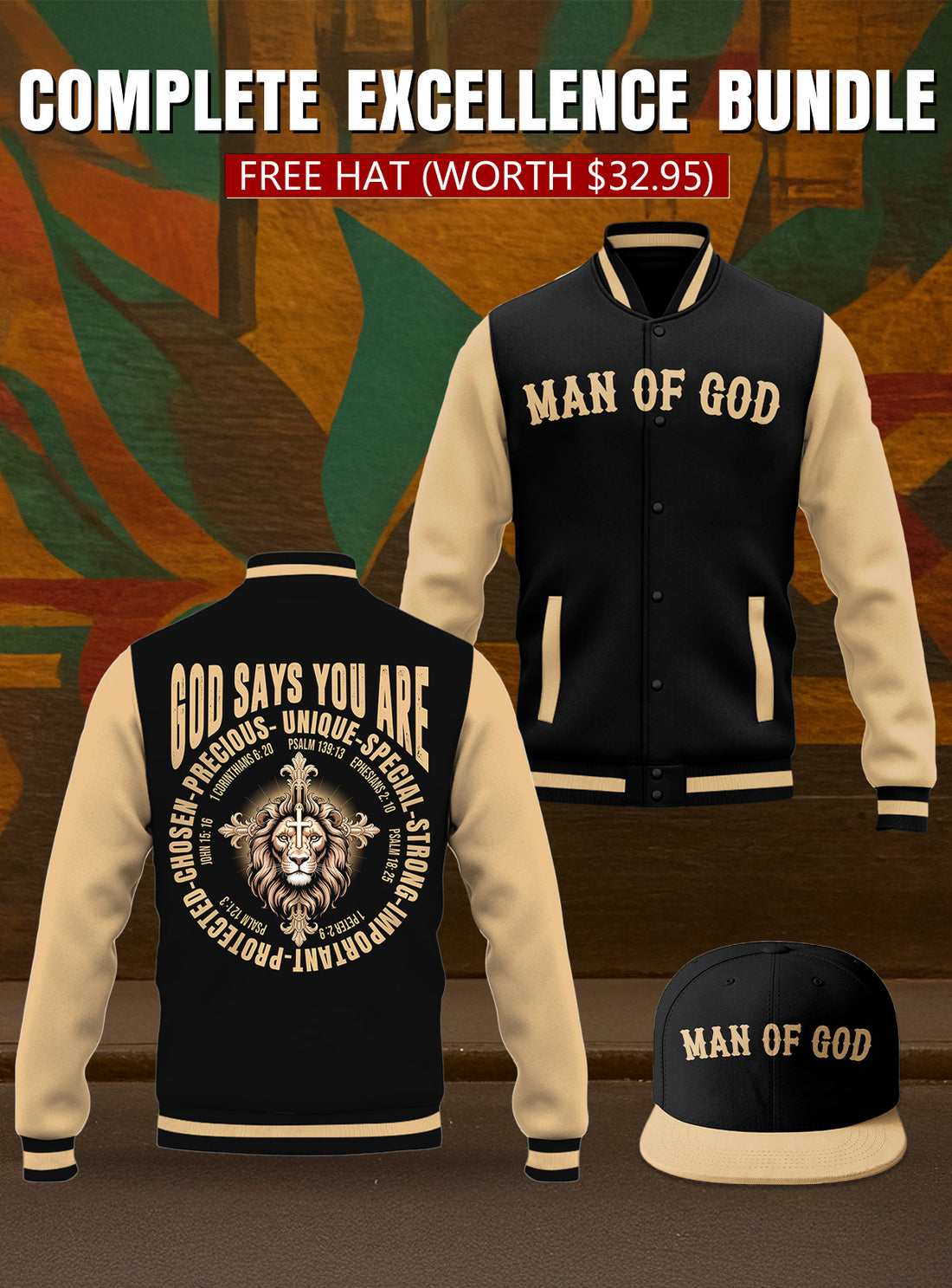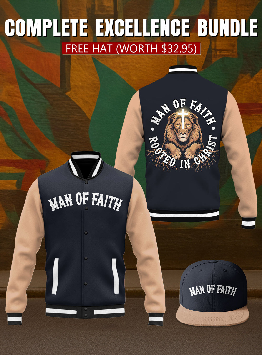 "Man Of Faith" Baseball Jacket & Hat Bundle