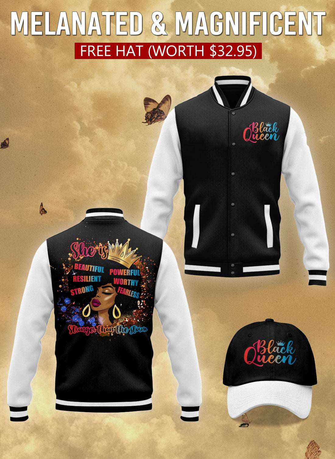 Black Queen Baseball Jacket & Hat Bundle