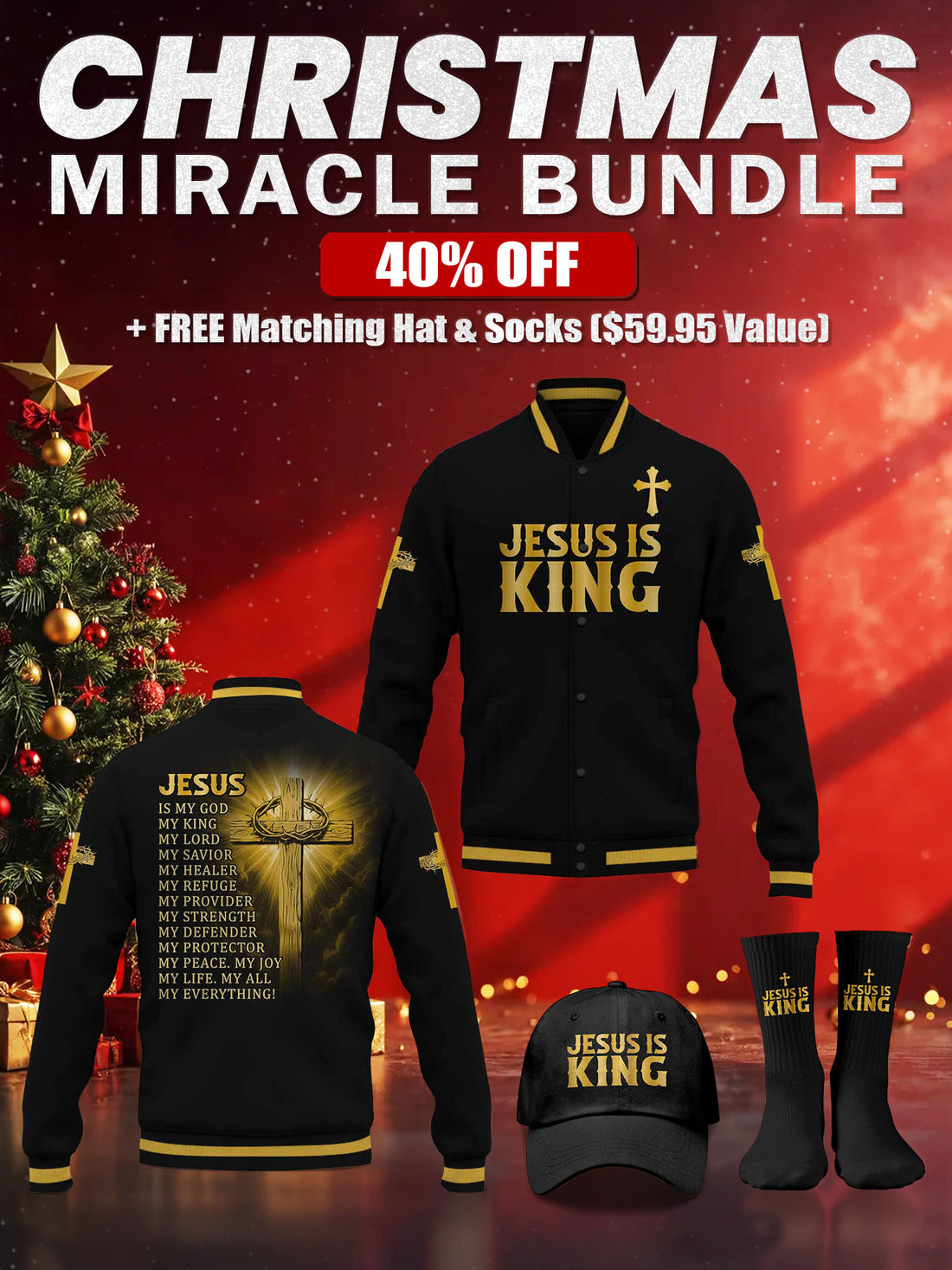 👑 “Majesty” Baseball Jacket Christmas Miracle Bundle Jesus is King — forever reigning and always...