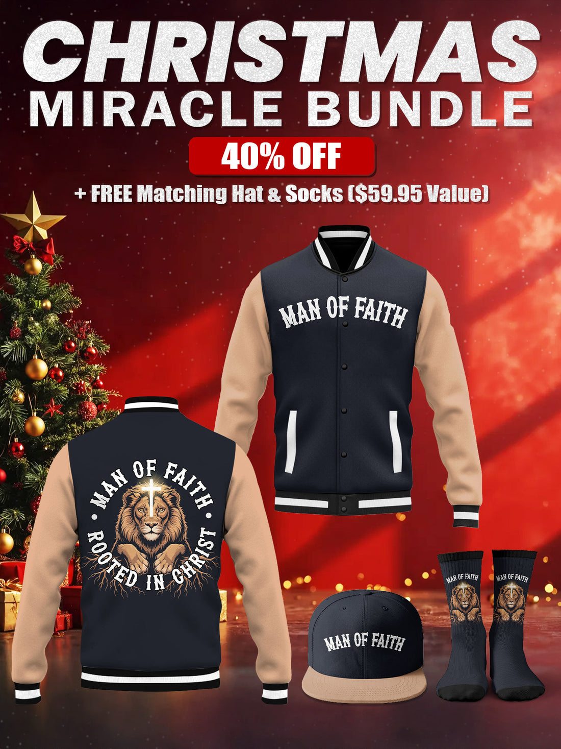 “Man of Faith” Baseball Jacket Christmas Miracle Bundle