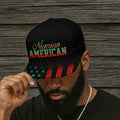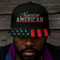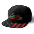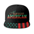 This snapback is a statement of identity and pride — blending the red, black, and green of Pan-African heritage with American stars and stripes. The front features "Nigerian American" in a powerful gradient print, celebrating culture, strength, and unity.