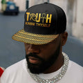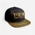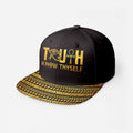 This snapback features the word TRUTH, blending ancient African symbols — the Eye of Horus and the Ankh — with a powerful call to action: KNOW THYSELF. The golden hieroglyphic brim adds history and honor to every wear.