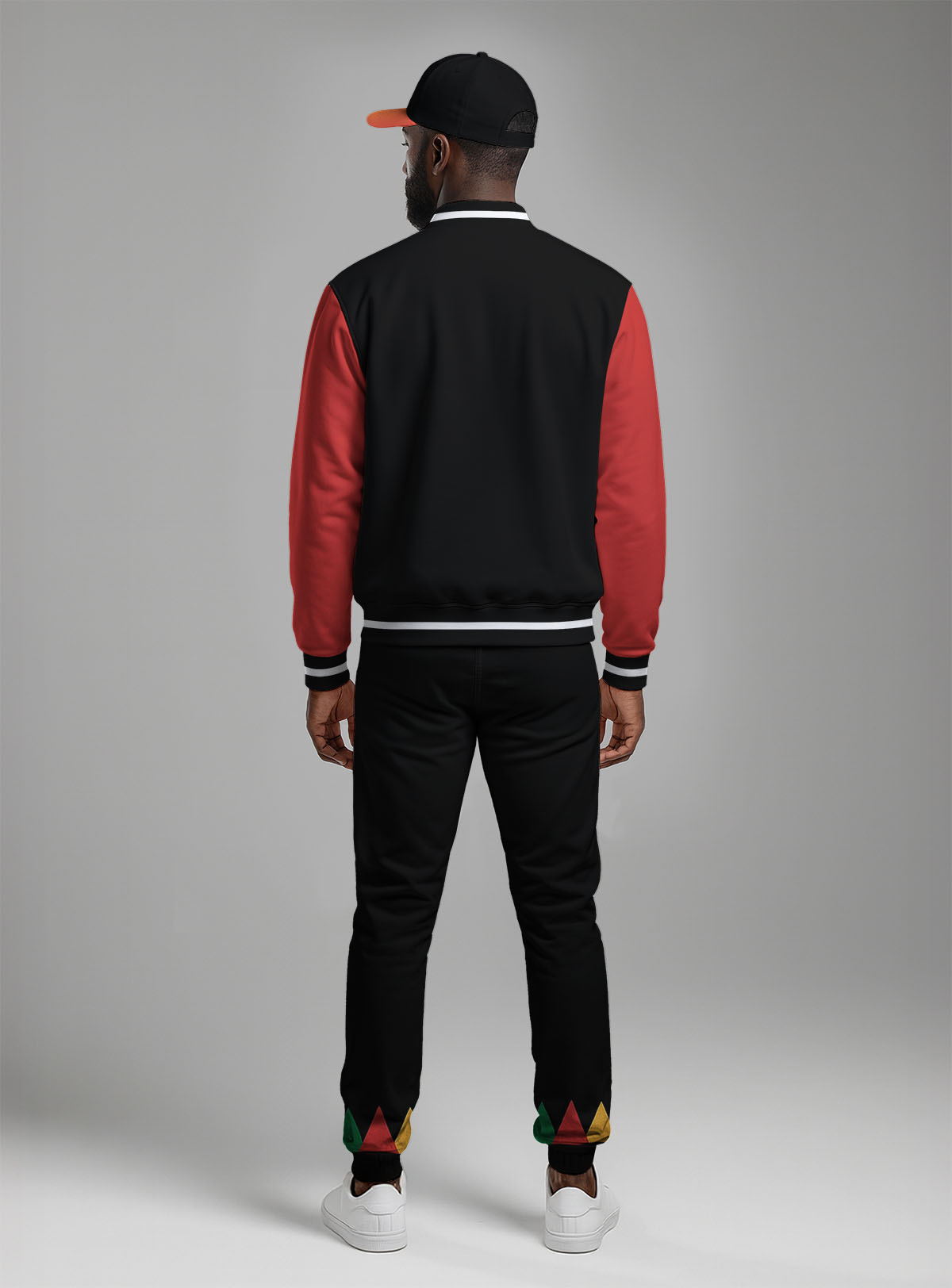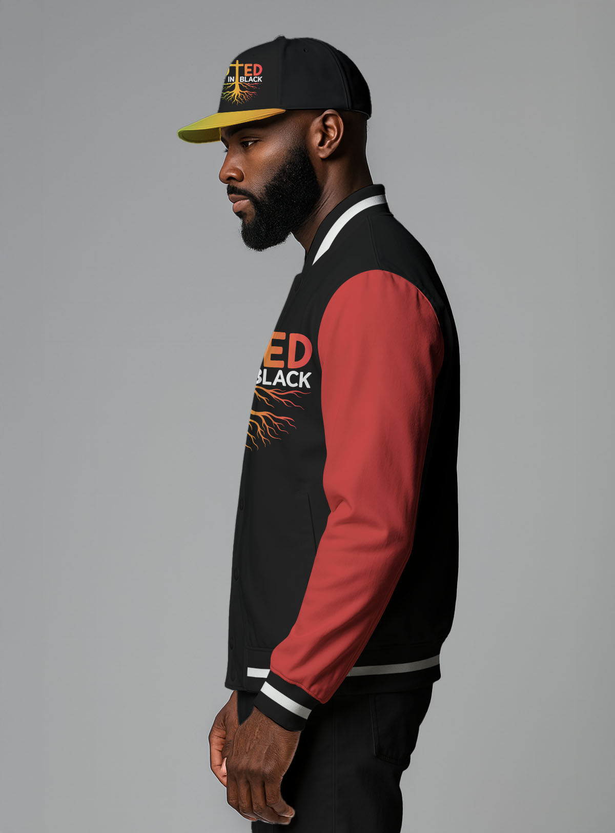 The Believe Achieve Succeed Baseball Jacket is a wearable mantra for those chasing excellence every day. With BELIEVE. ACHIEVE. SUCCEED. in bold varsity-style lettering and optional Pan-African red, black, and green accents, this jacket blends motivation with timeless streetwear style.