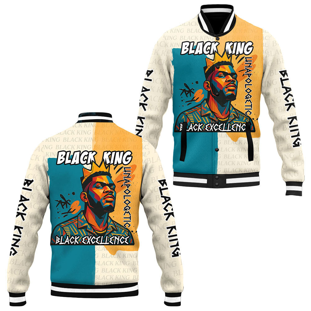 The “Black King Vibrance” Baseball Jacket is more than outerwear—it’s a bold celebration of power, pride, and identity. With “Black King” across the chest in vivid, eye-catching colors and vibrant Afrocentric-inspired patterns throughout, this jacket embodies royalty and resilience that shines bright. Designed with a sleek athletic cut and durable fabric, it delivers warmth, comfort, and undeniable style. Whether at community events, family gatherings, or making a statement on the street, this jacket lets you wear your crown with confidence and vibrant pride.