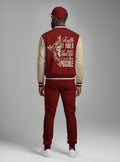 Fit: Classic varsity silhouette with structured shoulders, ribbed cuffs, and a button-down front — timeless, comfortable, and full of meaning.