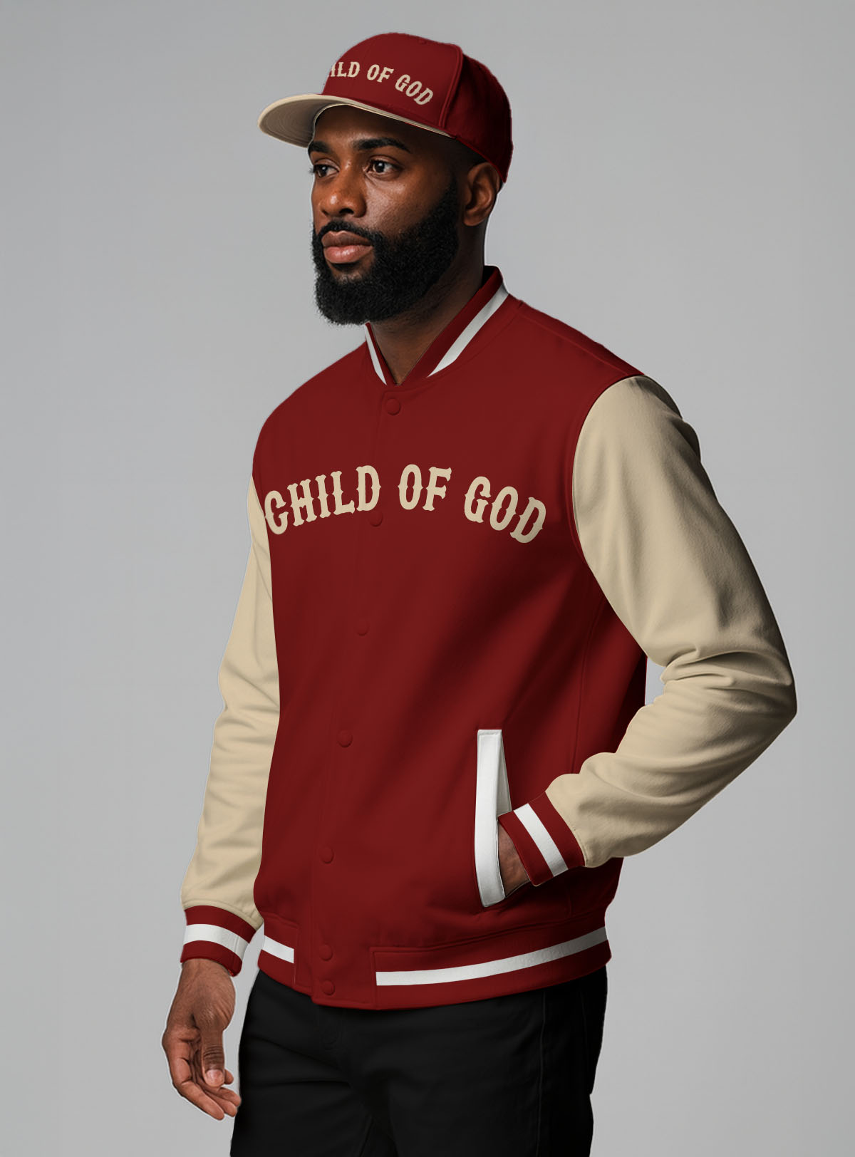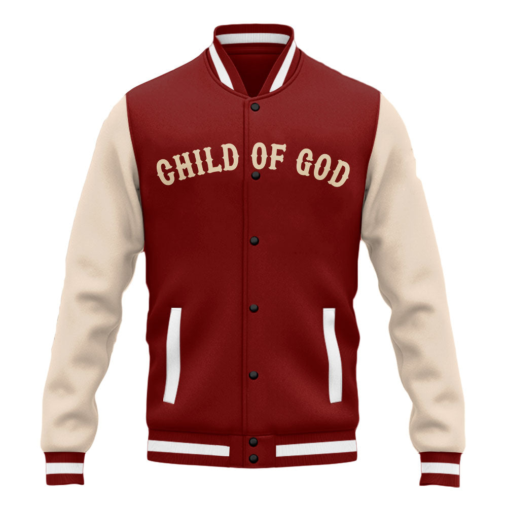 The “Child of God” Baseball Jacket was created for believers who walk with faith and know their true identity — loved, protected, and guided by grace.
