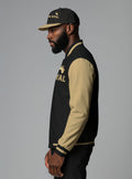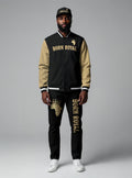 Front (Jacket): Classic varsity silhouette with striking “DOPE ROYALTY” lettering — a fearless statement of style, culture, and self-respect.