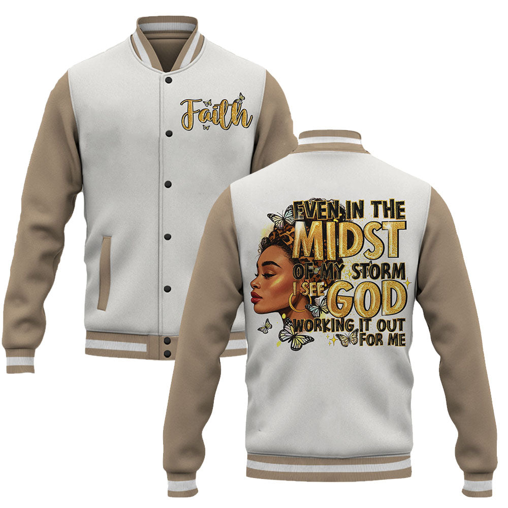 Front (Jacket): Classic varsity silhouette with striking “FAITH” lettering — declaring belief, purpose, and devotion.