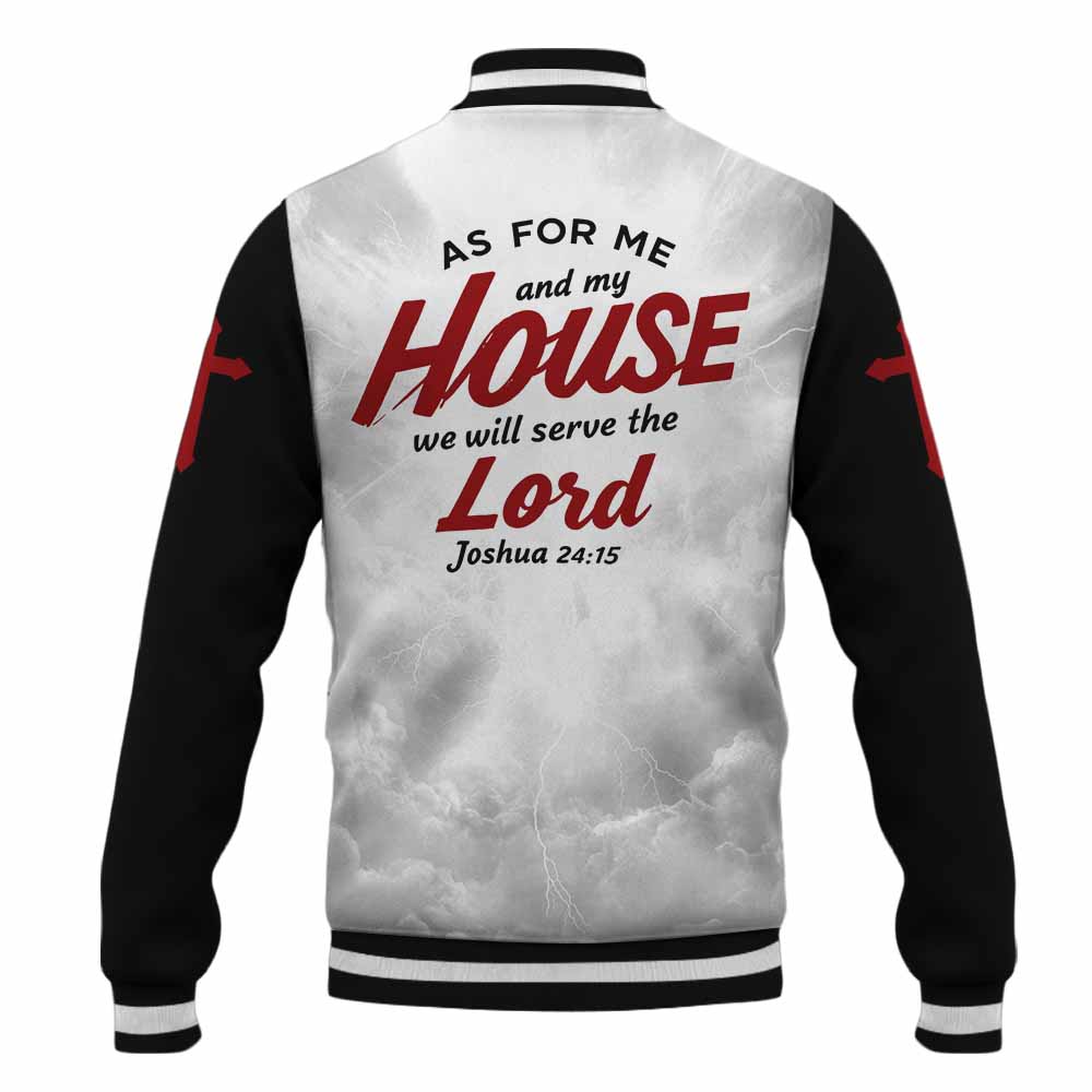 Front (Jacket): Classic varsity silhouette with powerful “HOUSE OF FAITH” lettering — a declaration that your foundation stands firm on God’s word.