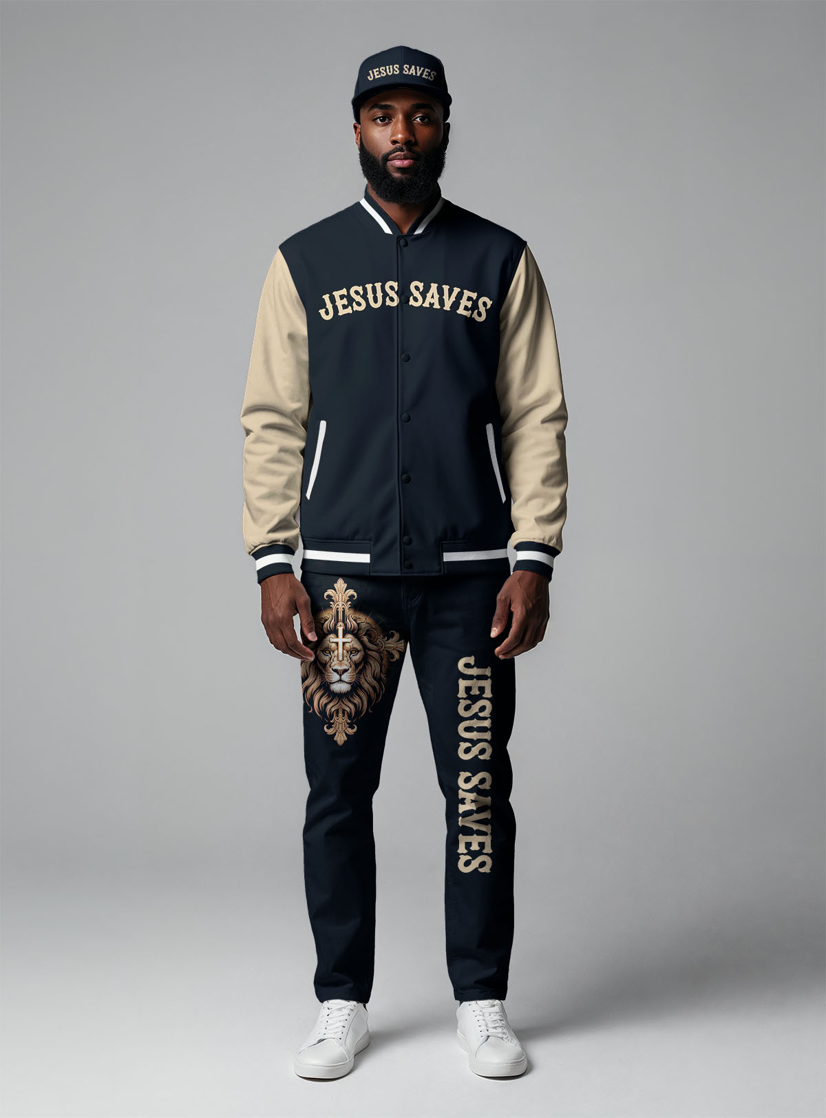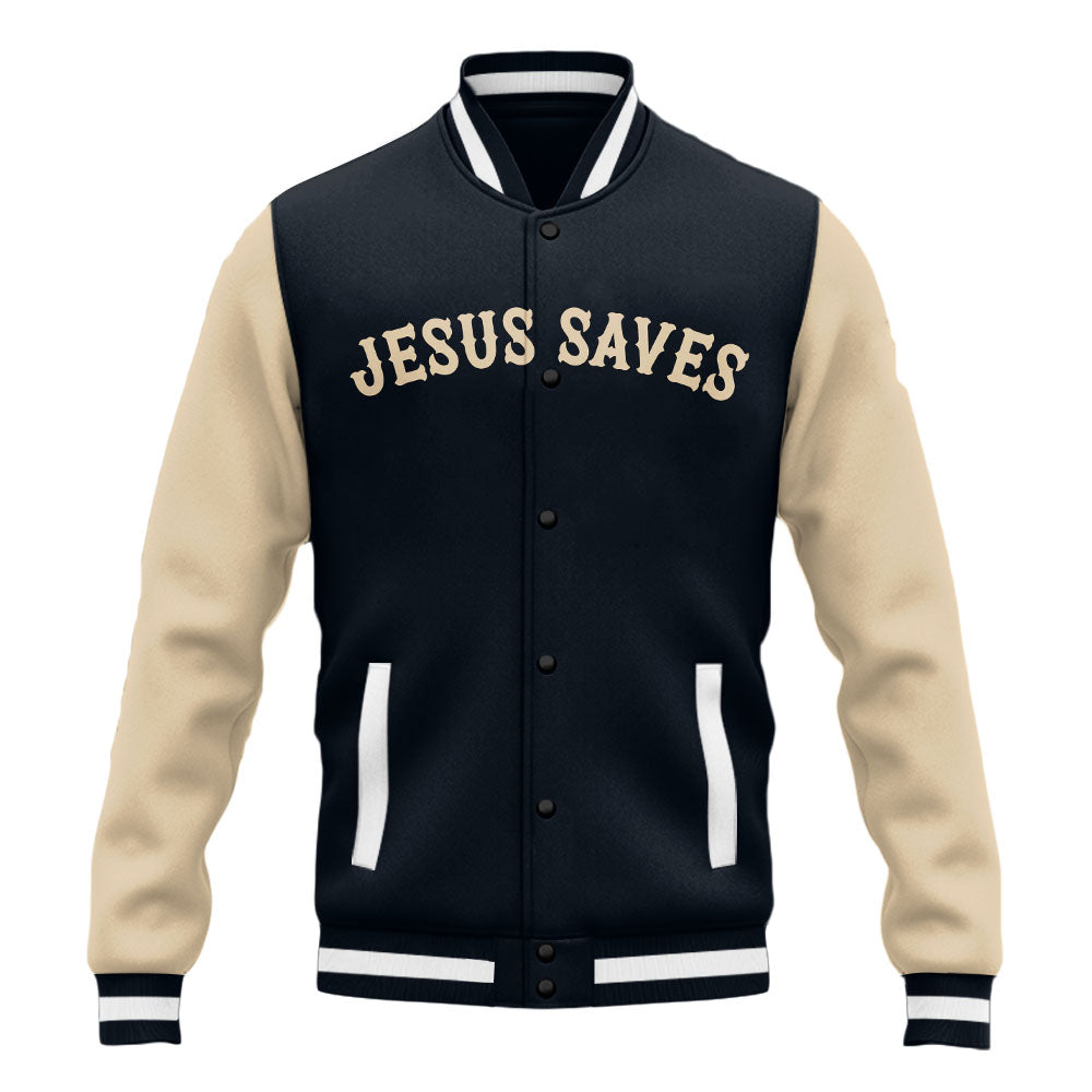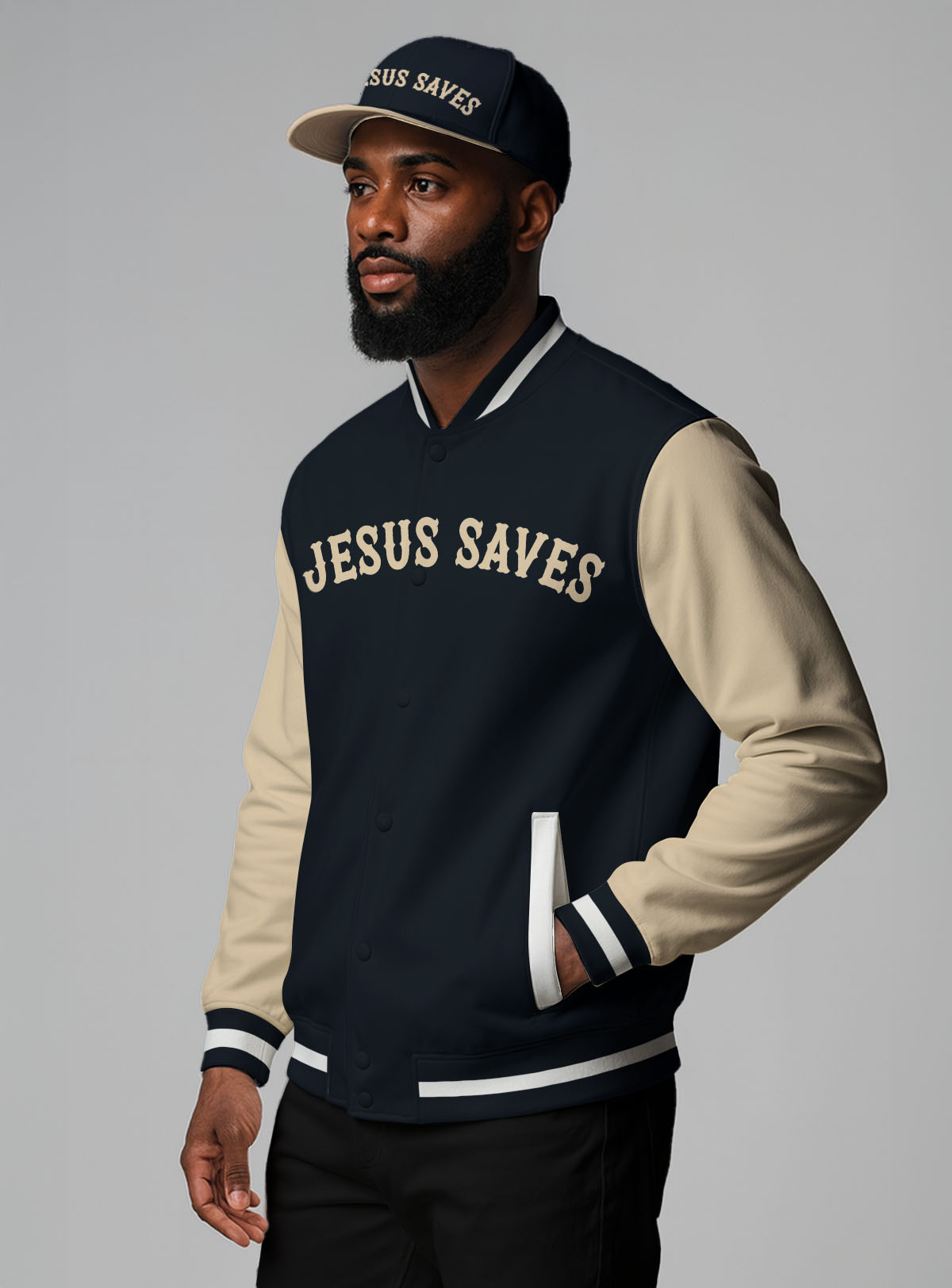 The “Jesus Saves” Baseball Jacket was made for believers who wear their faith with confidence — a bold reminder of redemption, strength, and God’s everlasting love.