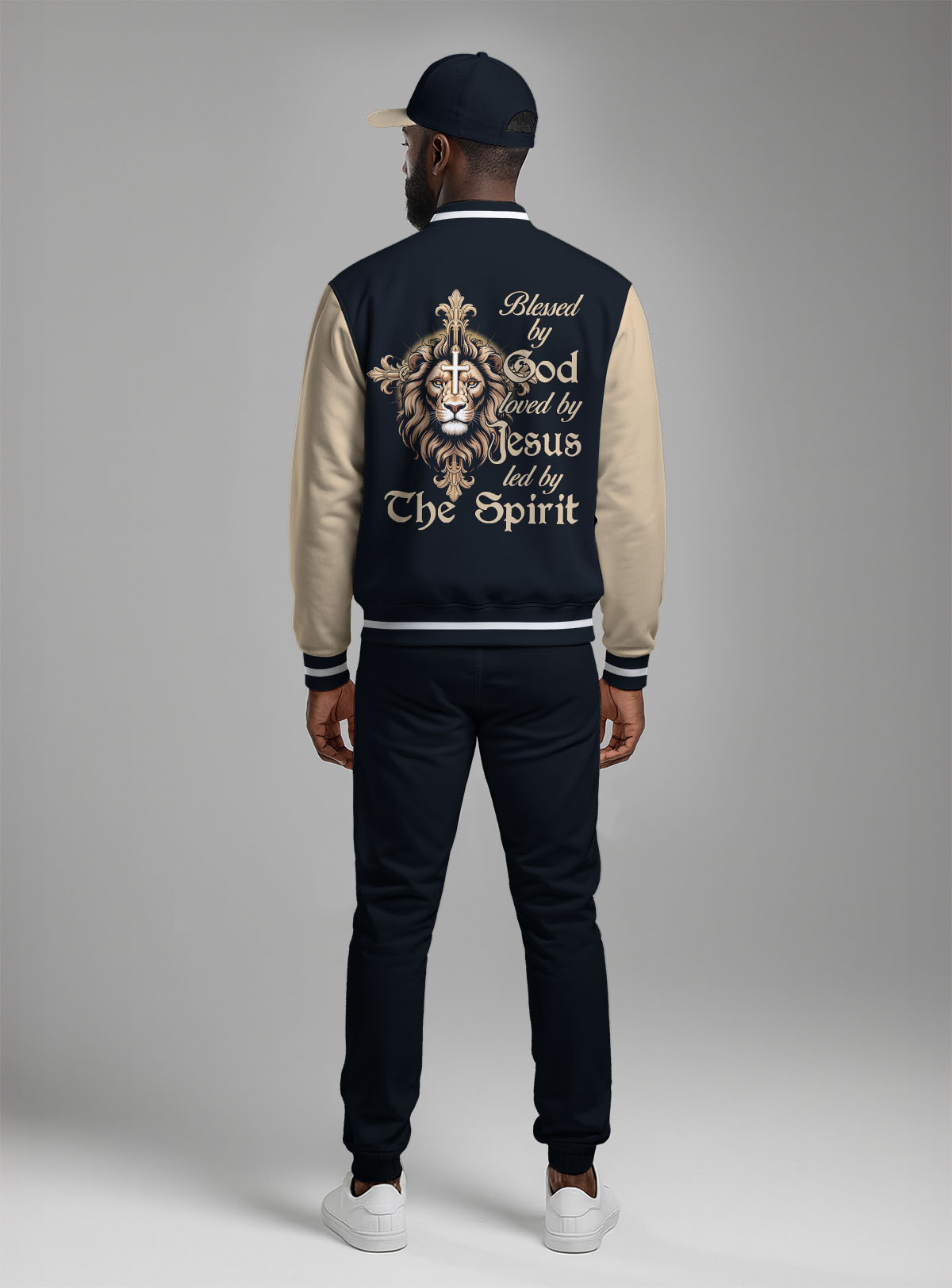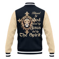 Fit: Classic varsity silhouette with structured shoulders, ribbed cuffs, and a clean button-down front — made to stand out in faith and style.