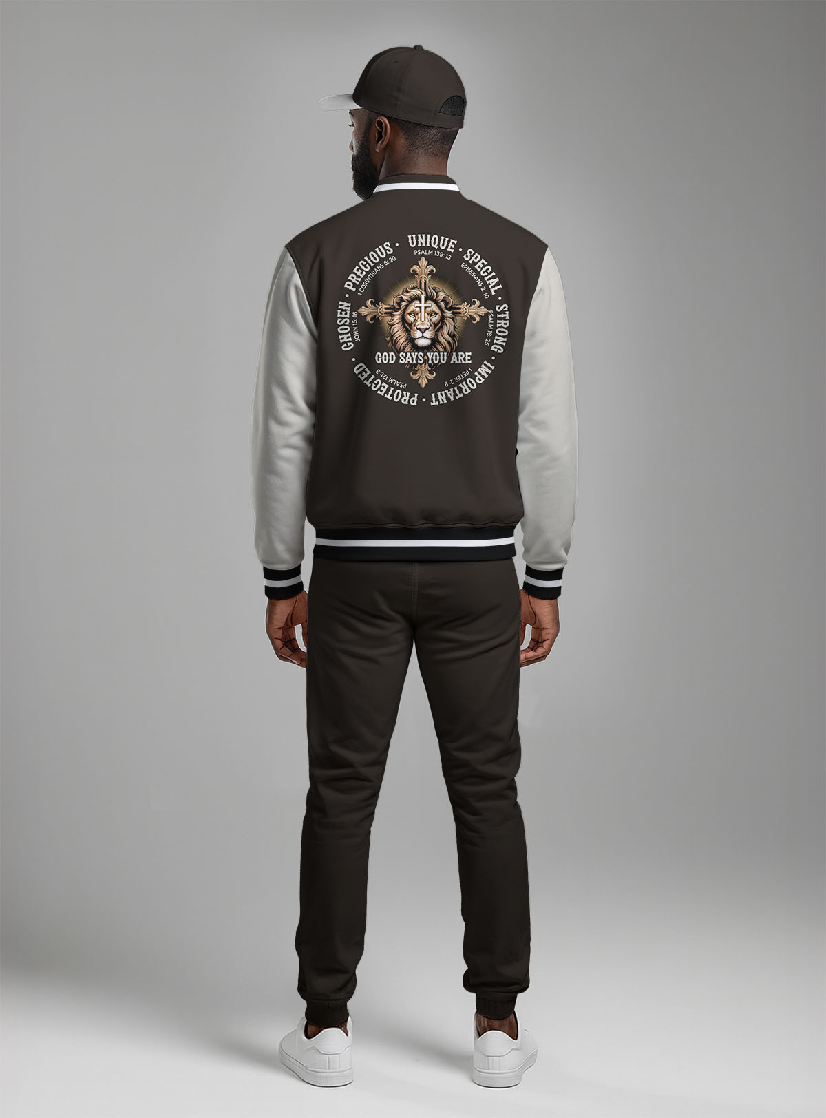 Strong in spirit. Steadfast in purpose. The “Man of Faith” varsity jacket is made for those who walk boldly with God — a symbol of leadership, confidence, and divine conviction.