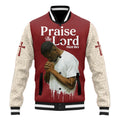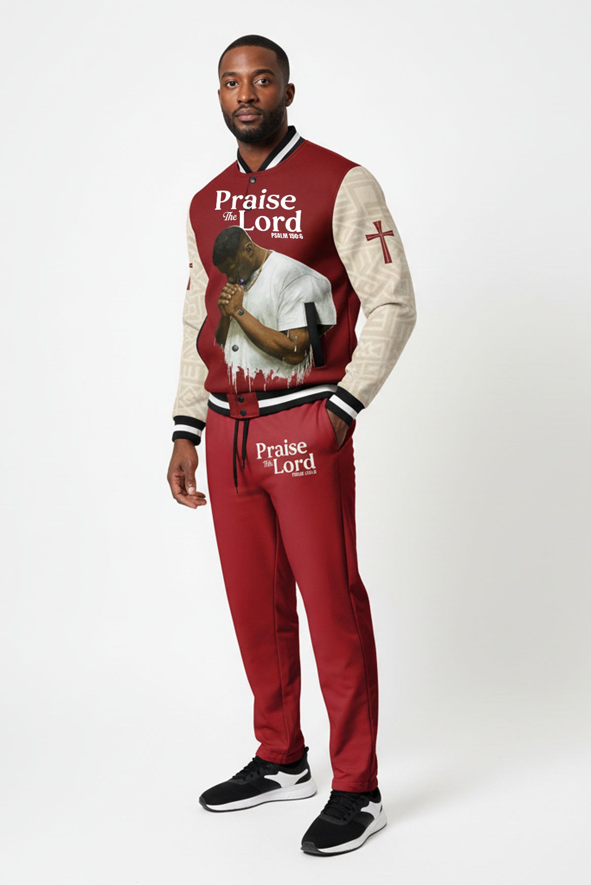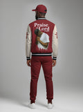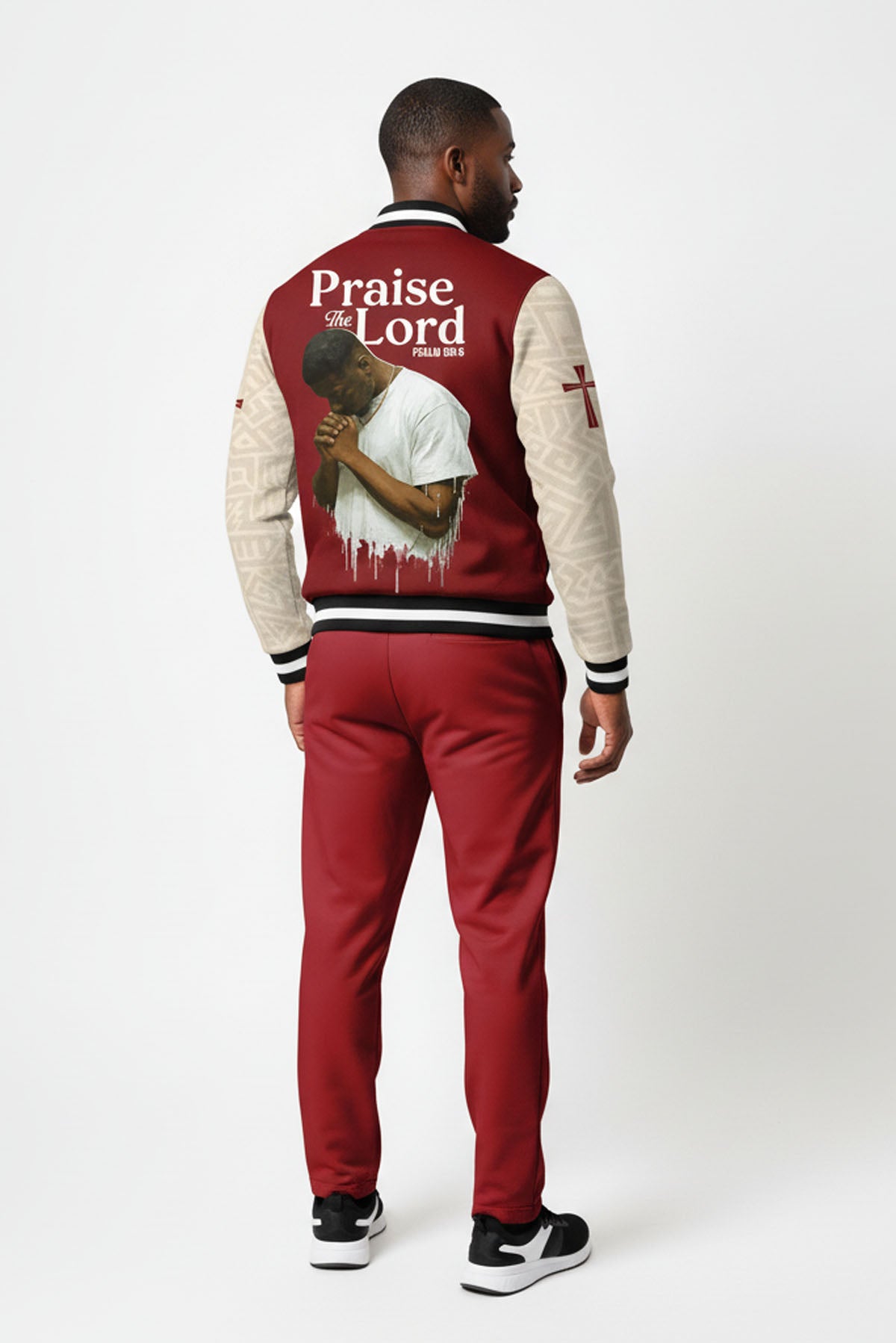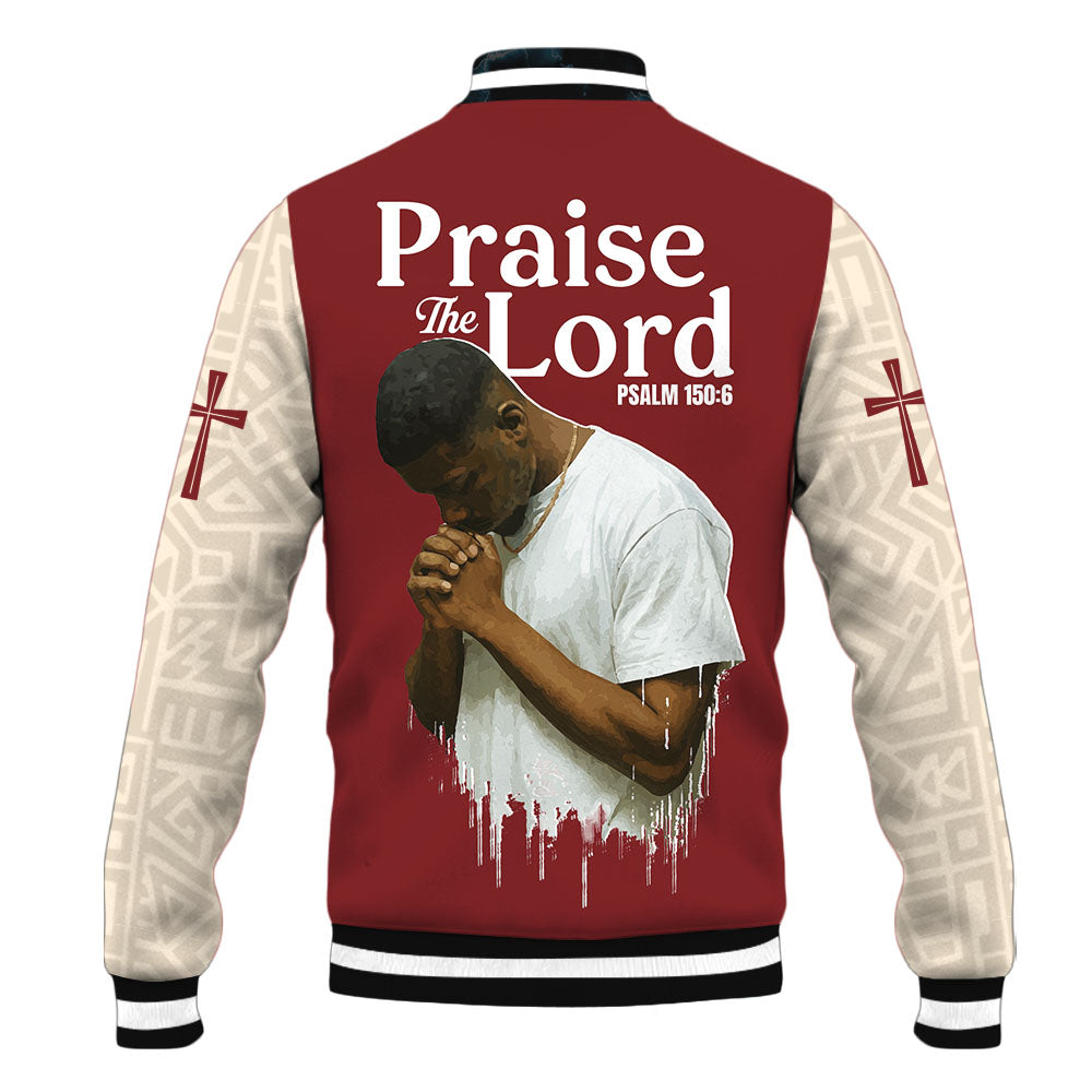 The “Praise The Lord” Baseball Jacket is more than outerwear—it’s a bold proclamation of faith you can wear with pride. With “Praise The Lord” and Psalm 150:6 emblazoned across the chest and back, and a powerful image of prayer at its core, this jacket embodies devotion and the joy of giving glory to God. Built with a sleek, athletic cut and durable fabric, it blends warmth, style, and everyday comfort. Whether you’re at a game, on the move, or making a statement in your community, this jacket keeps your faith front and center while giving you a confident, standout look.