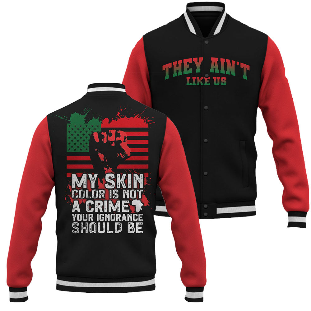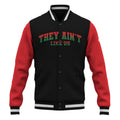 The They Ain’t Us Pan-African Jacket takes the unapologetic confidence of the original tee and elevates it into a statement outerwear piece. With THEY AIN’T US emblazoned across the chest and vibrant Pan-African red, black, and green accents woven into the design, this jacket makes sure your pride is seen from every angle.