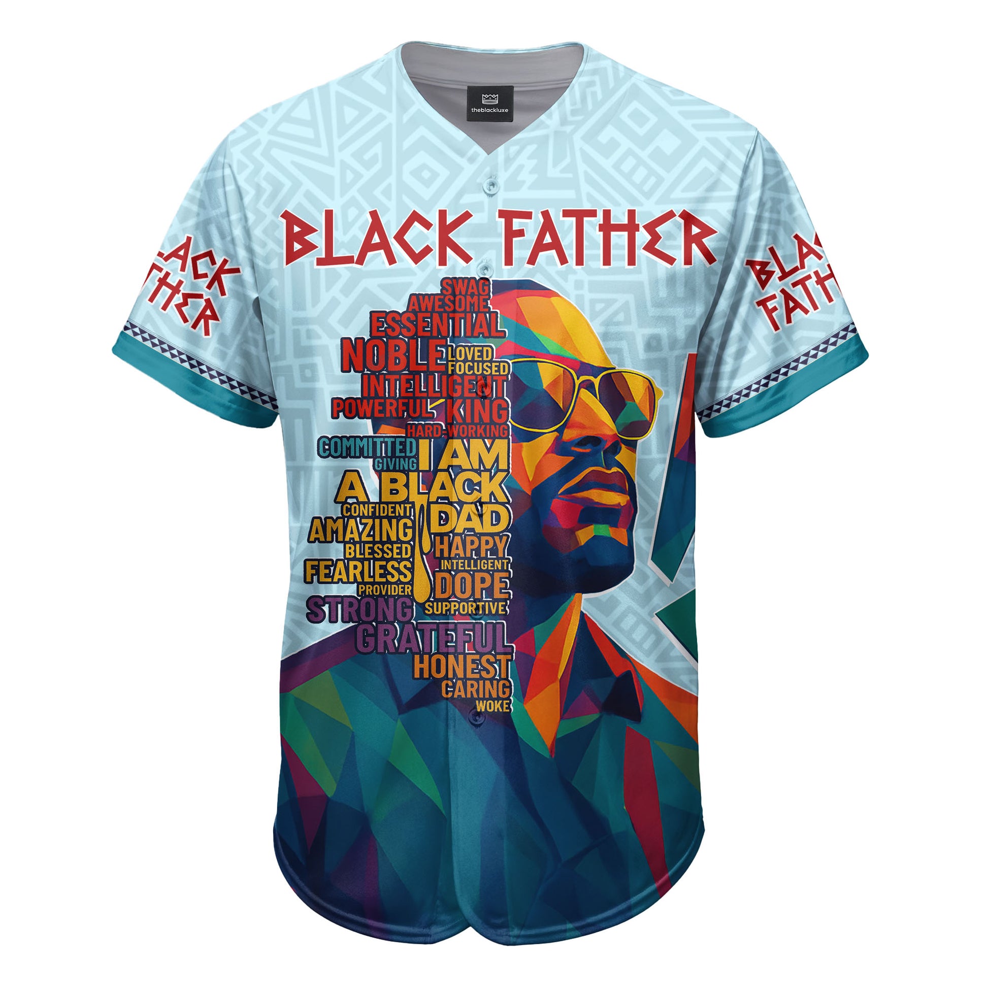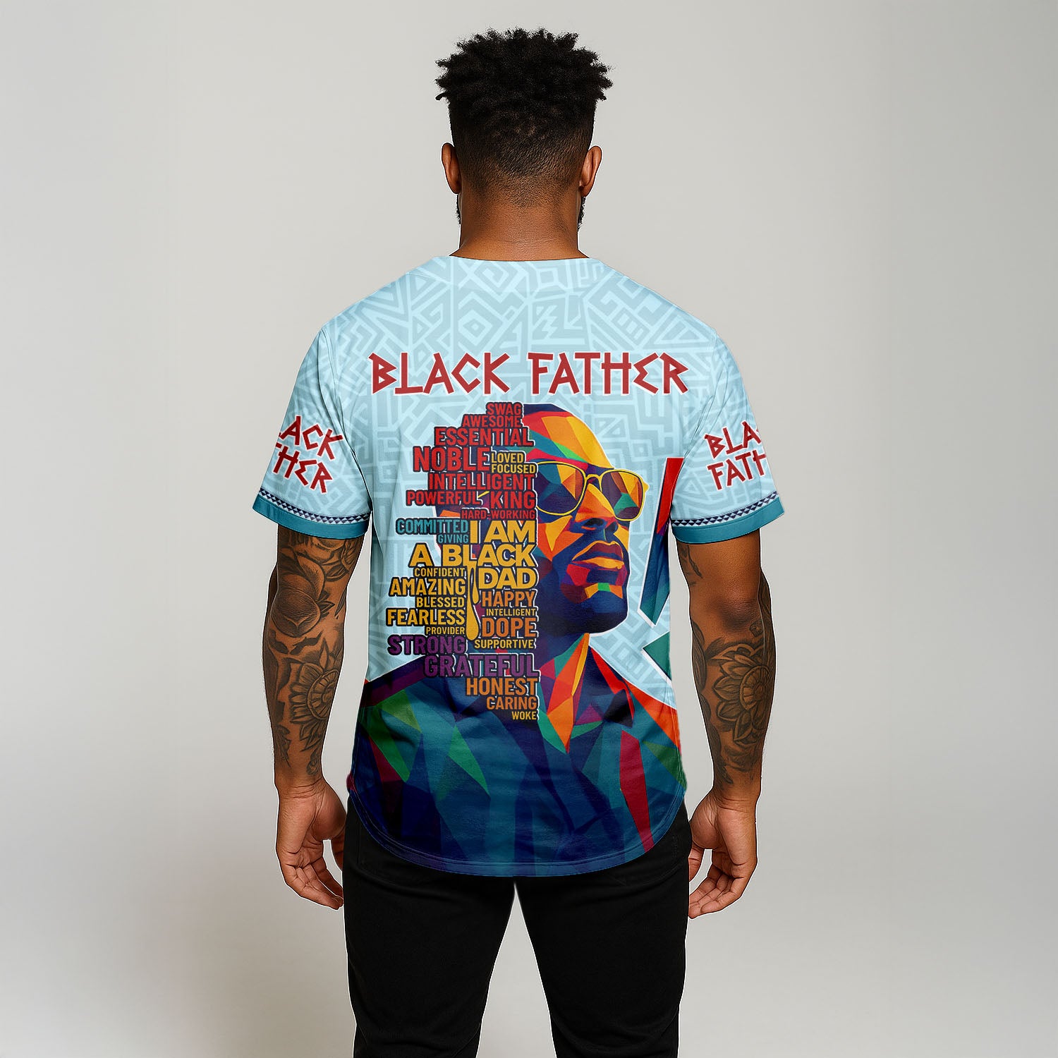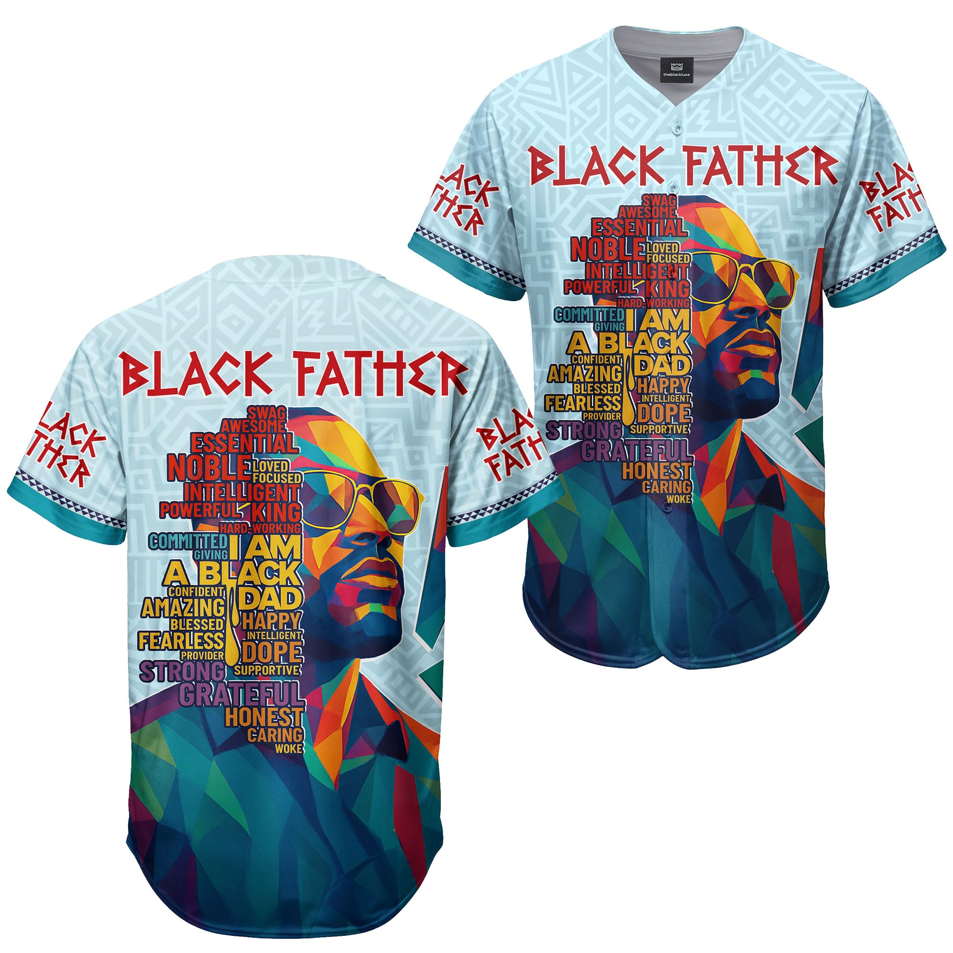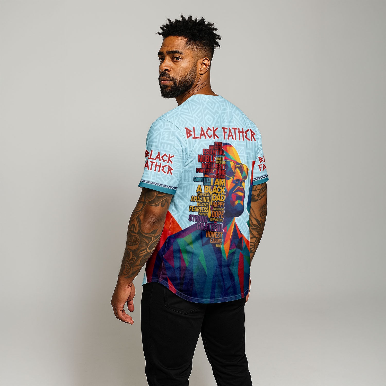 The “Black Father Afrocentric” Baseball Jersey is more than an outfit—it’s a bold celebration of legacy and identity. With “Black Father” across the chest and a powerful Afrocentric portrait filled with words of strength and honor on the back, this design speaks to the pride, resilience, and love of Black fatherhood. Crafted from lightweight, breathable fabric, it blends comfort with conviction, letting you wear your fatherhood with confidence wherever you go.