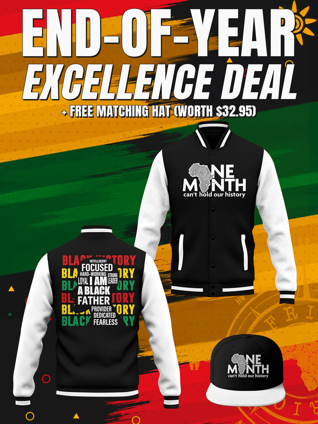 Black Excellence Brave Leader Ambitious Baseball Jacket & Hat Bundle
