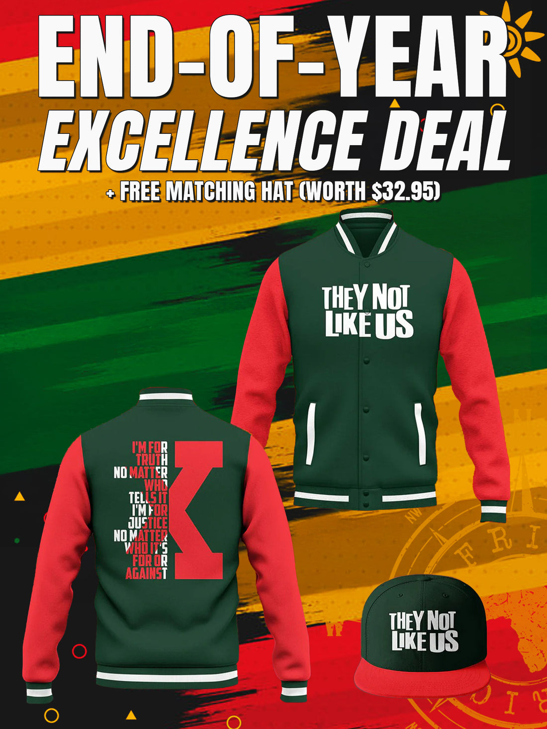 They Not Like Us Black History Baseball Jacket & Hat Bundle