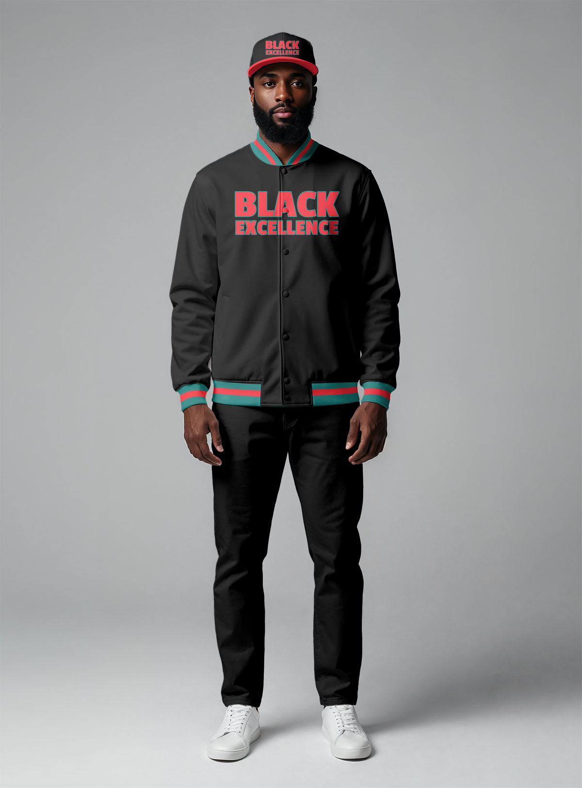 The “Black Excellence” Baseball Jacket + Hat Bundle was made to honor heritage, celebrate strength, and embody the power of unity, resilience, and faith. It’s a bold declaration that Black excellence isn’t just achieved — it’s lived every day.
