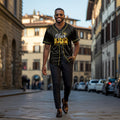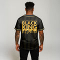 “BLACK KING SPIRIT” front print in bold gold lettering