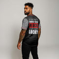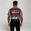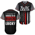 Jet-black body streaked with a battle-worn flag and a single red lifeline down the center. Geometric sleeve tapes salute deep-rooted heritage, while the chest script warns every doubter in bold white: THEY NOT LIKE US. Turn around and the truth hits harder—“I DIDN’T CHOOSE TO BE BLACK, I JUST GOT LUCKY.” Pride, gratitude, and unbreakable confidence stitched into every fiber.