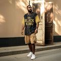 “BLACK KING SPIRIT” front print in bold gold lettering