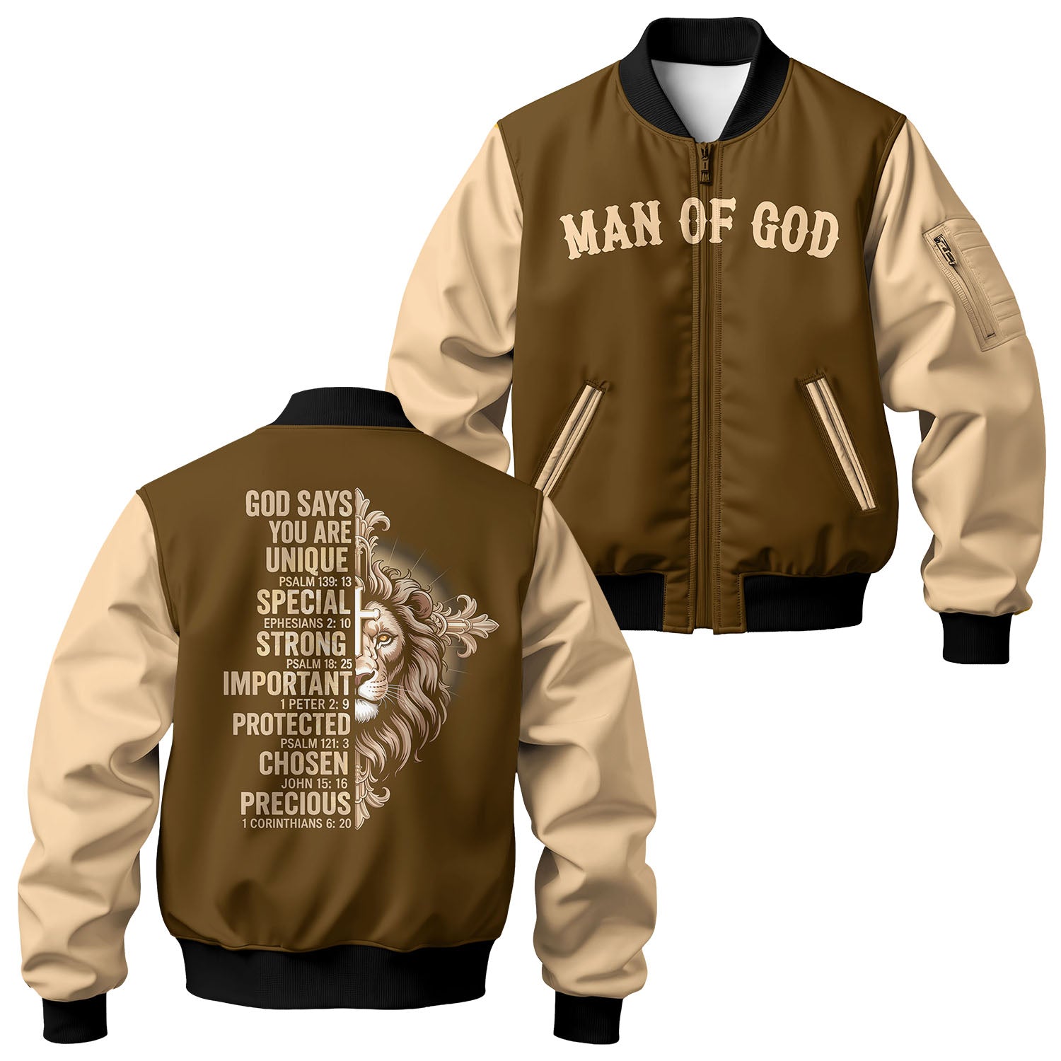 The “Brown Man of God” Bomber Jacket is a wearable reminder that faith is not weakness — it’s power under control. Walk with courage. Lead with love. Stand as a Man of God.