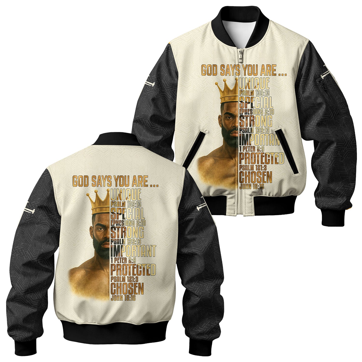 The “God Says You Are” Bomber Jacket is more than a statement — it’s a promise. Every time you wear it, remember: you are chosen, worthy, and deeply loved by Him.