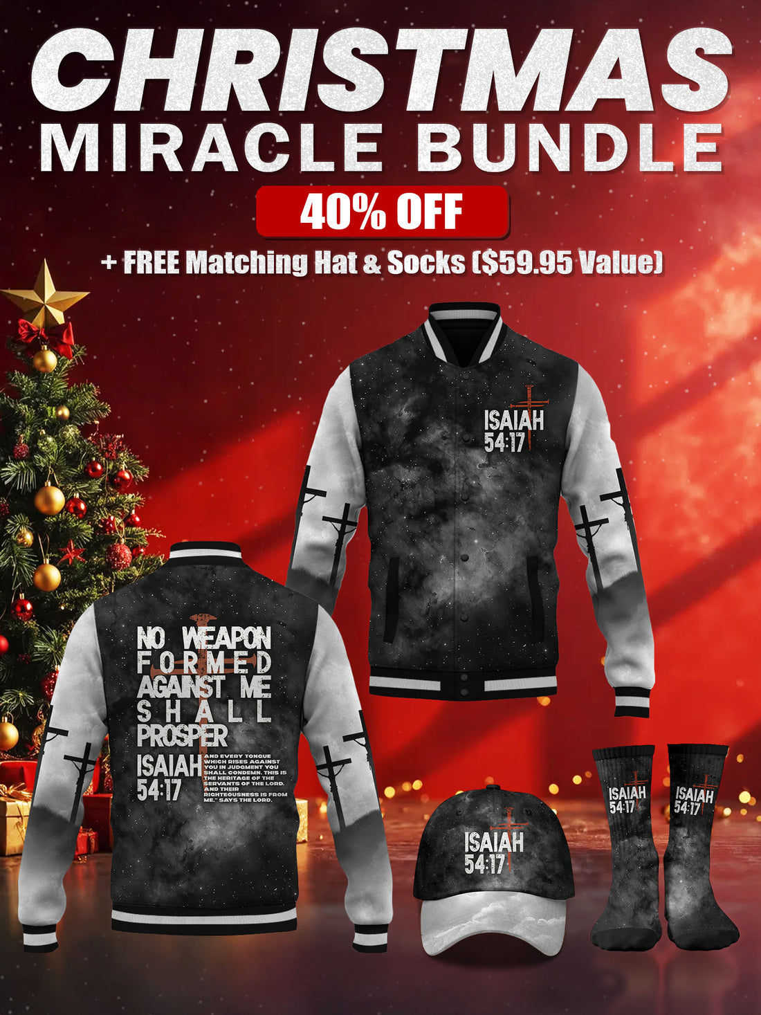"No Weapon Christian" Baseball Jacket Christmas Miracle Bundle
