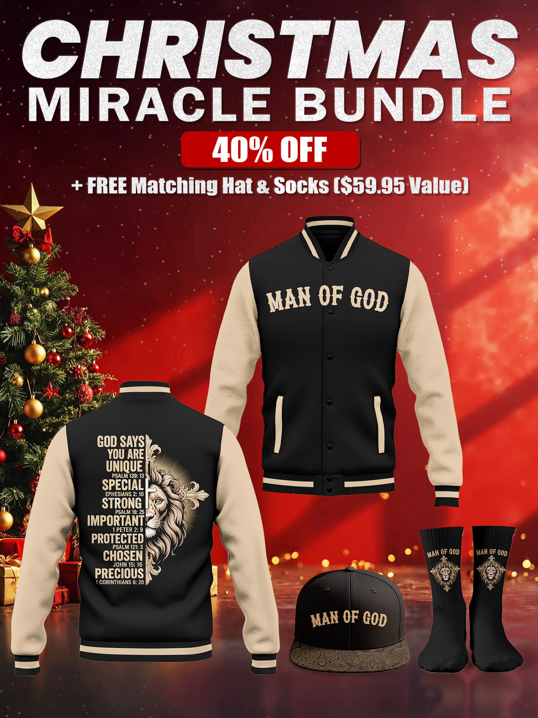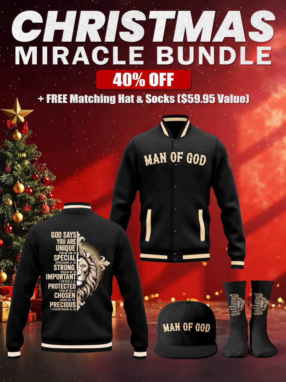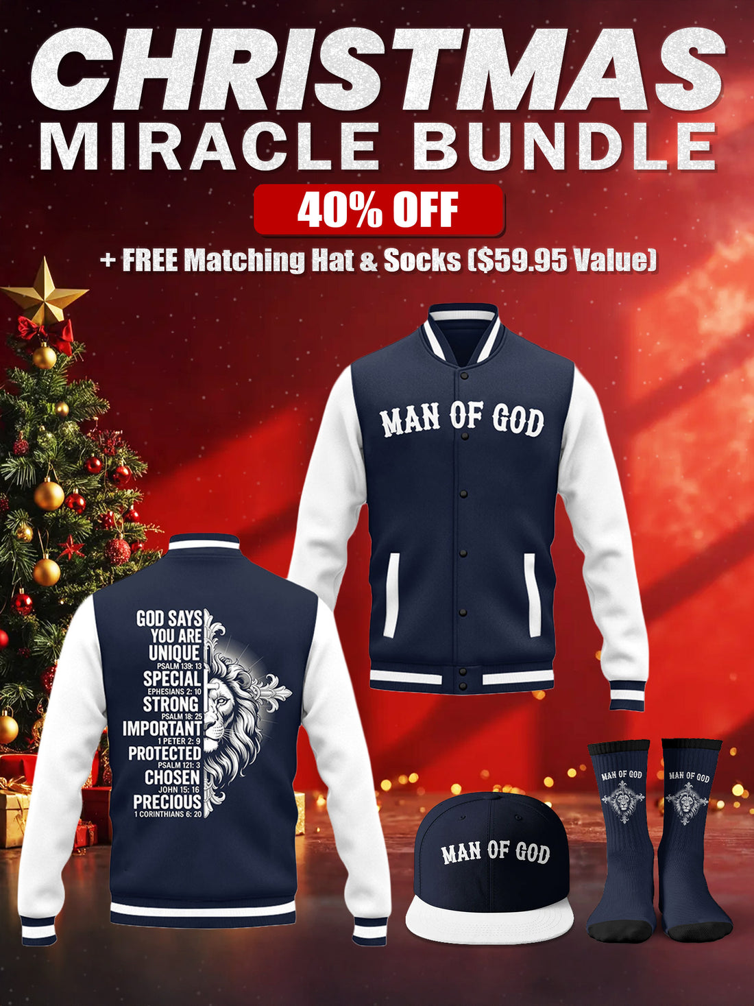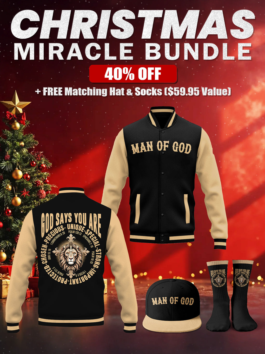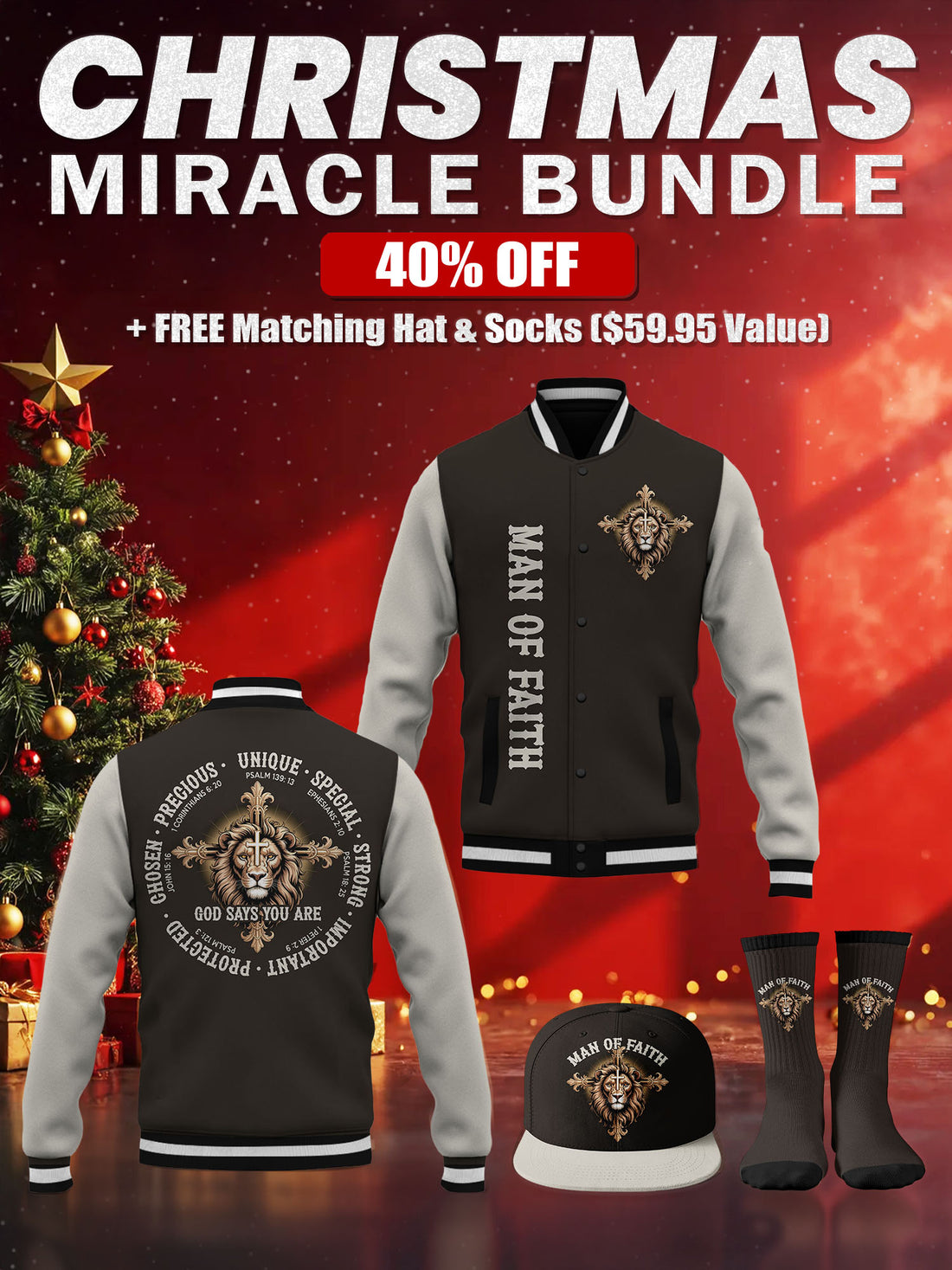 “Man of Faith” Baseball Jacket Christmas Miracle Bundle