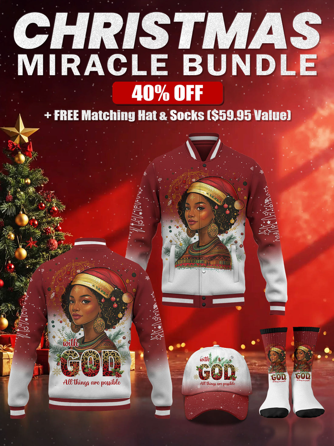 Black Woman Baseball Jacket Christmas Miracle Bundle