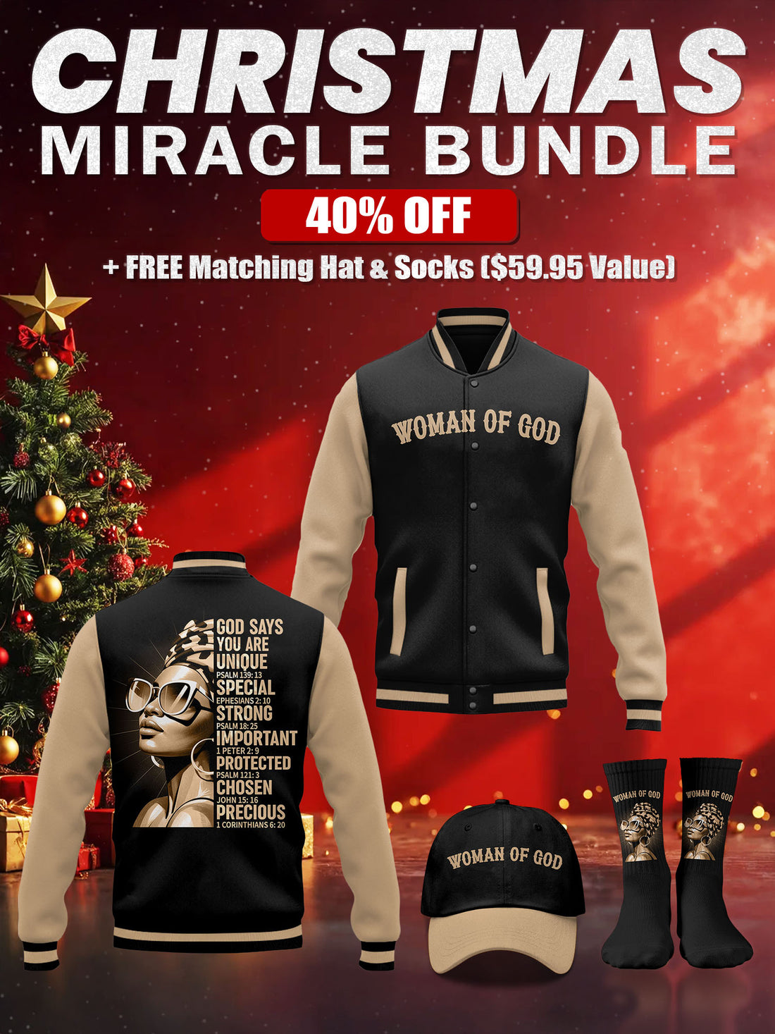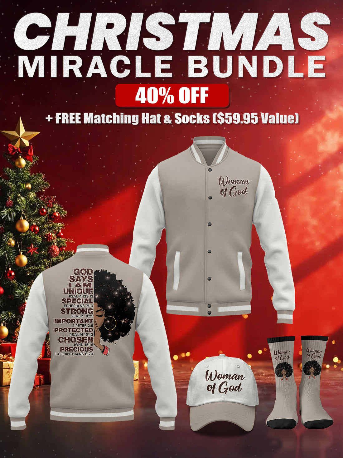 Woman Of Faith Baseball Jacket Christmas Miracle Bundle