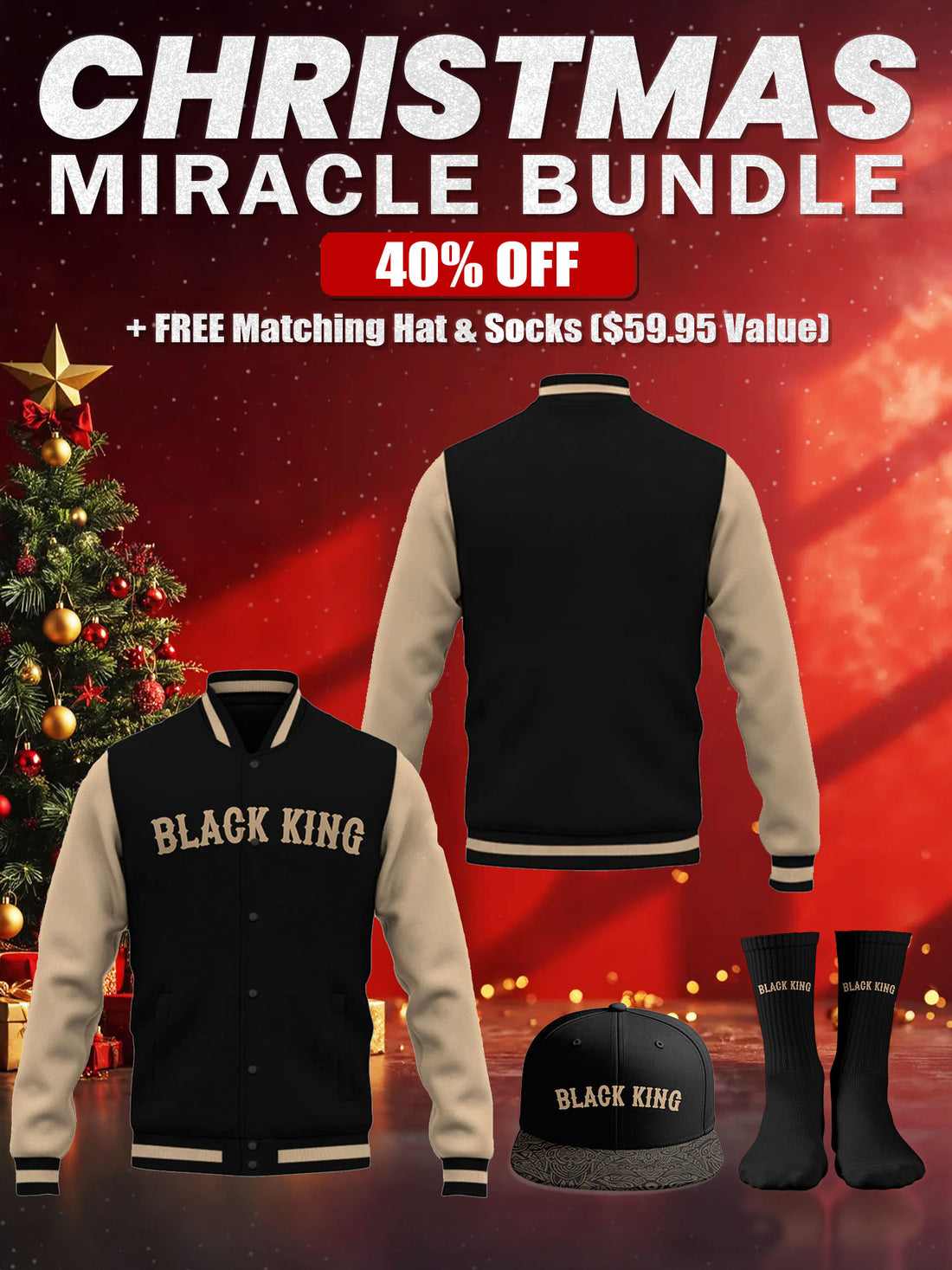 Black King Gold Baseball Jacket Christmas Miracle Bundle
