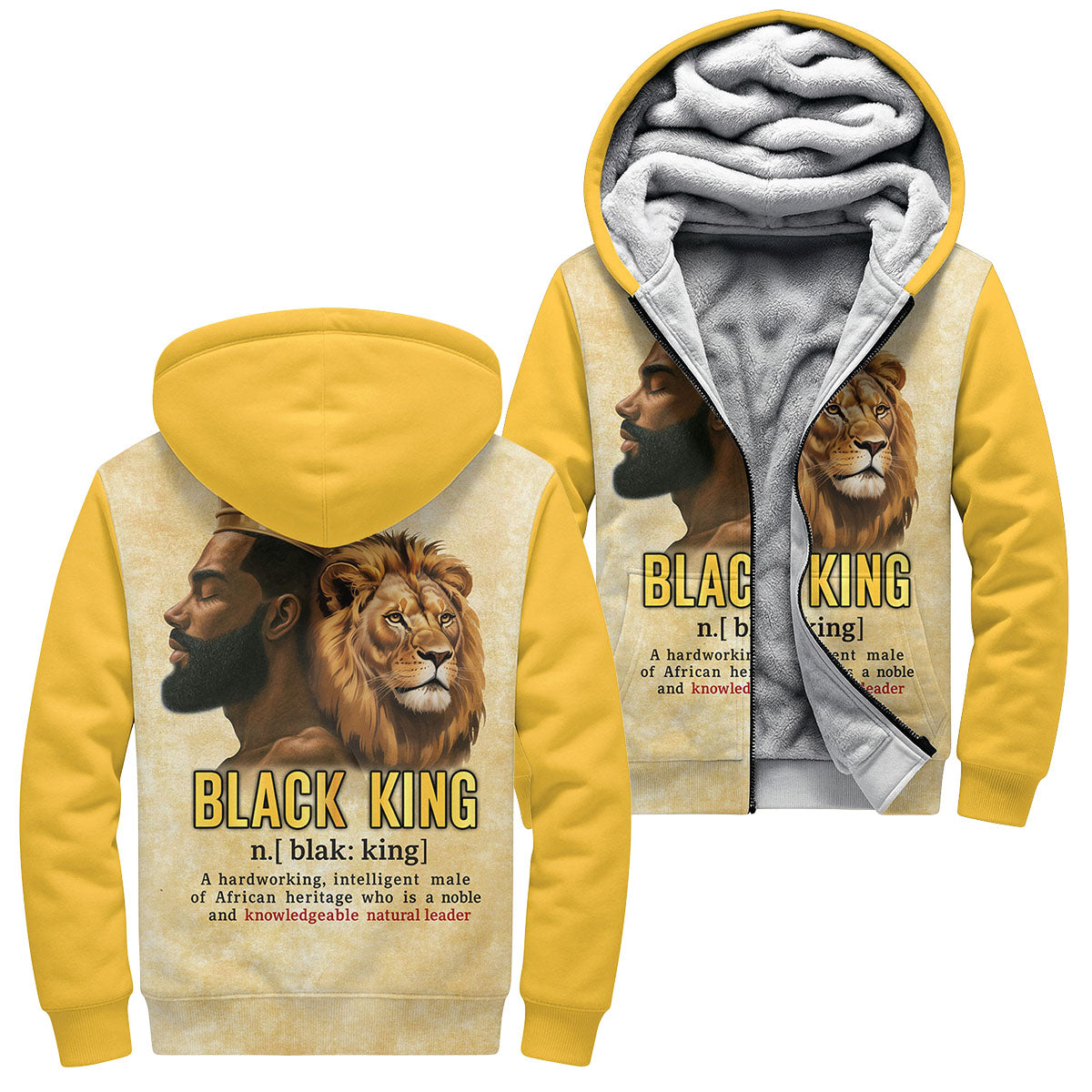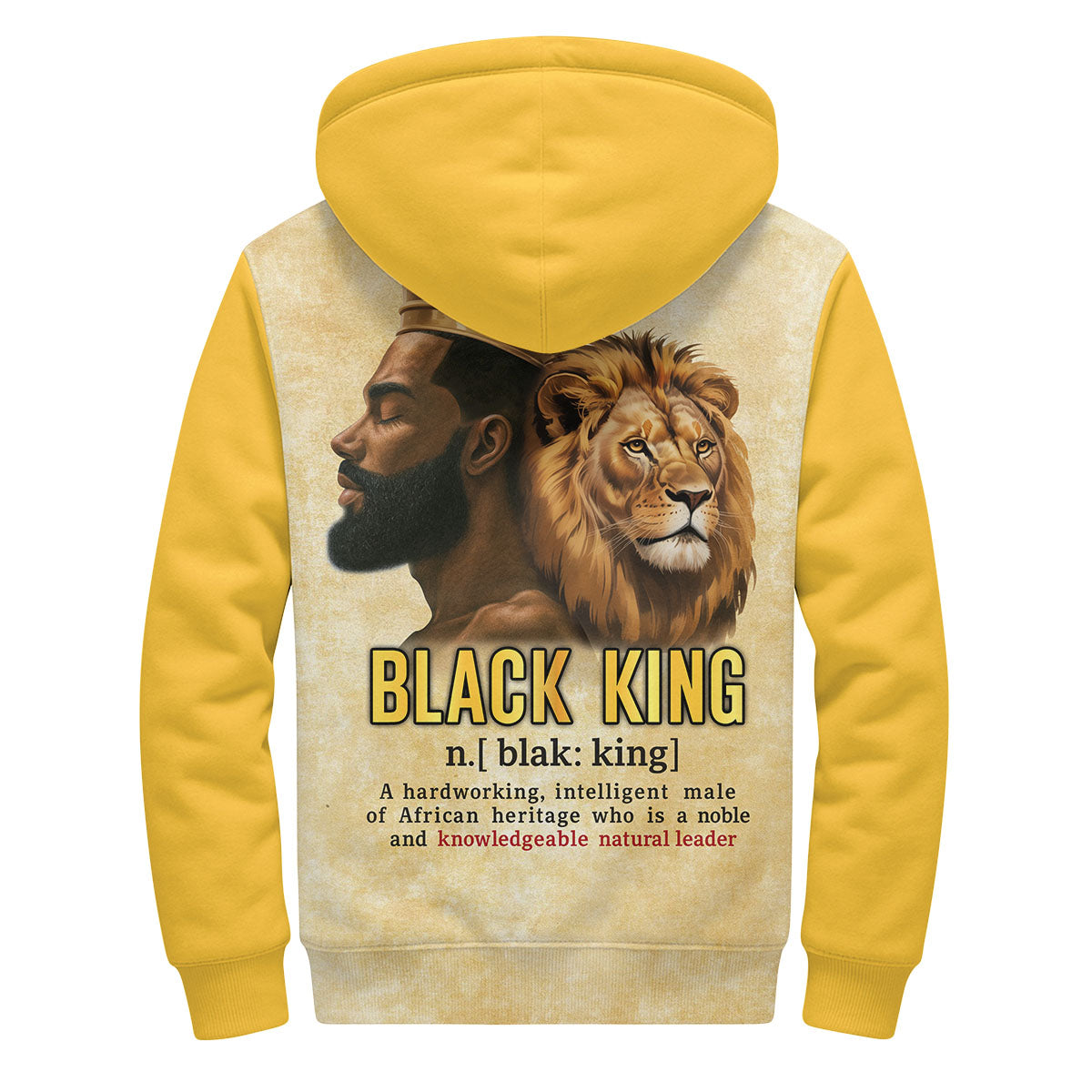 Design: Deep black fleece with striking gold “BLACK KING” lettering across the chest — regal, confident, and impossible to ignore.