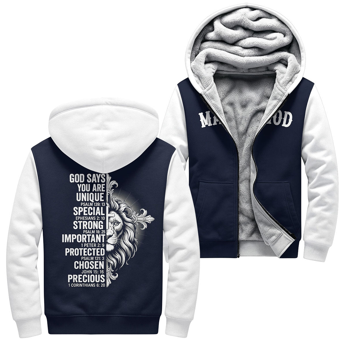 Design: Deep black fleece with bold white “GOD’S CHOSEN” lettering across the chest — clean, fearless, and powerful in message.
