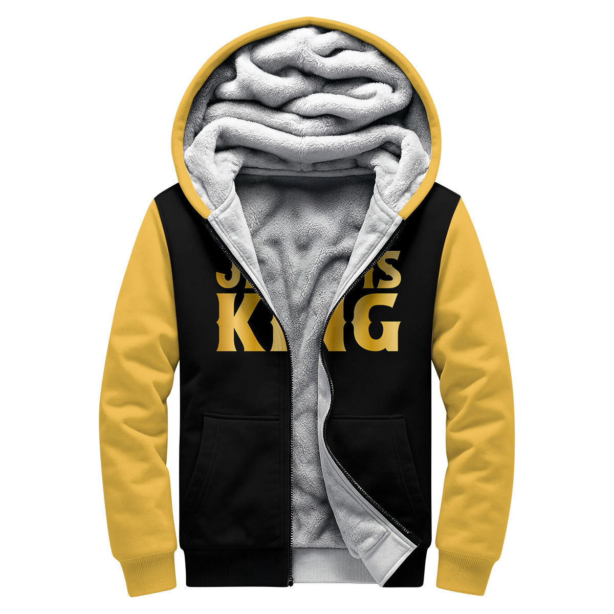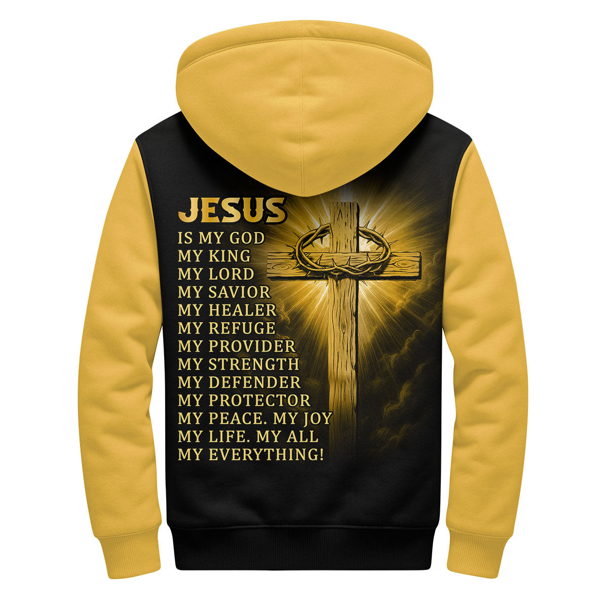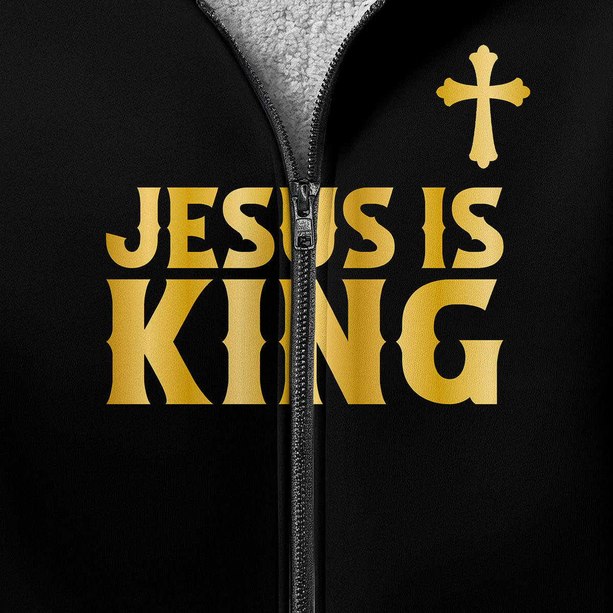 Design: Deep black fleece with elegant gold “MAJESTY” lettering across the chest — bold, regal, and full of divine presence.