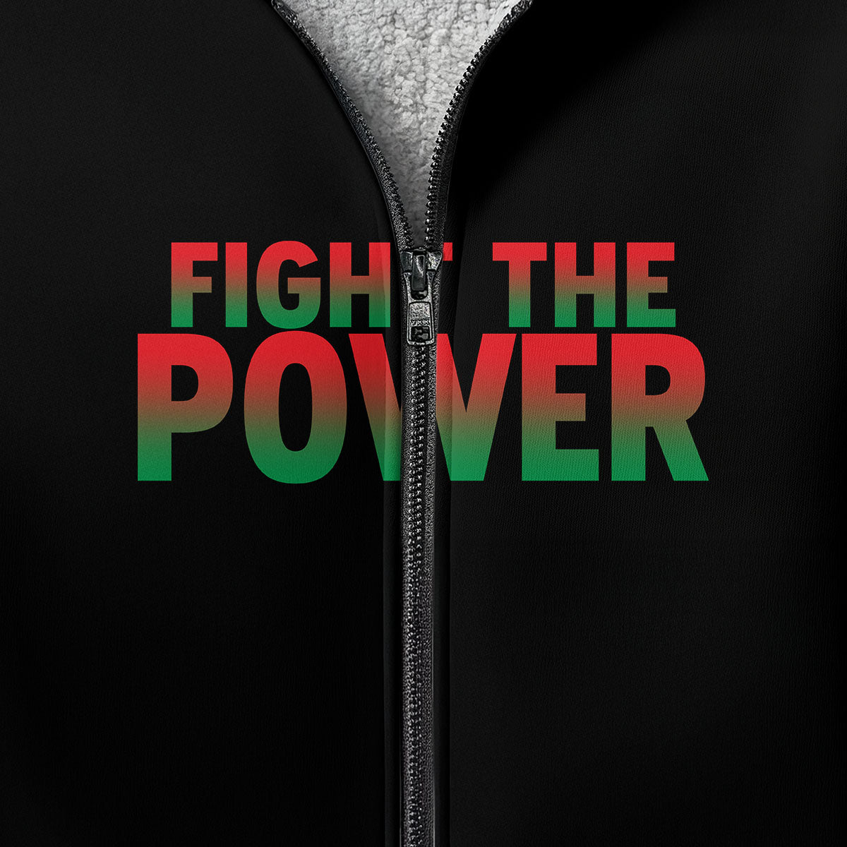 Design: Deep black fleece with bold white “POWER PRIDE” lettering across the chest — clean, fearless, and unapologetically proud.