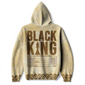 Gold-printed “Black King Nutrition Facts” label-style design on the chest or back