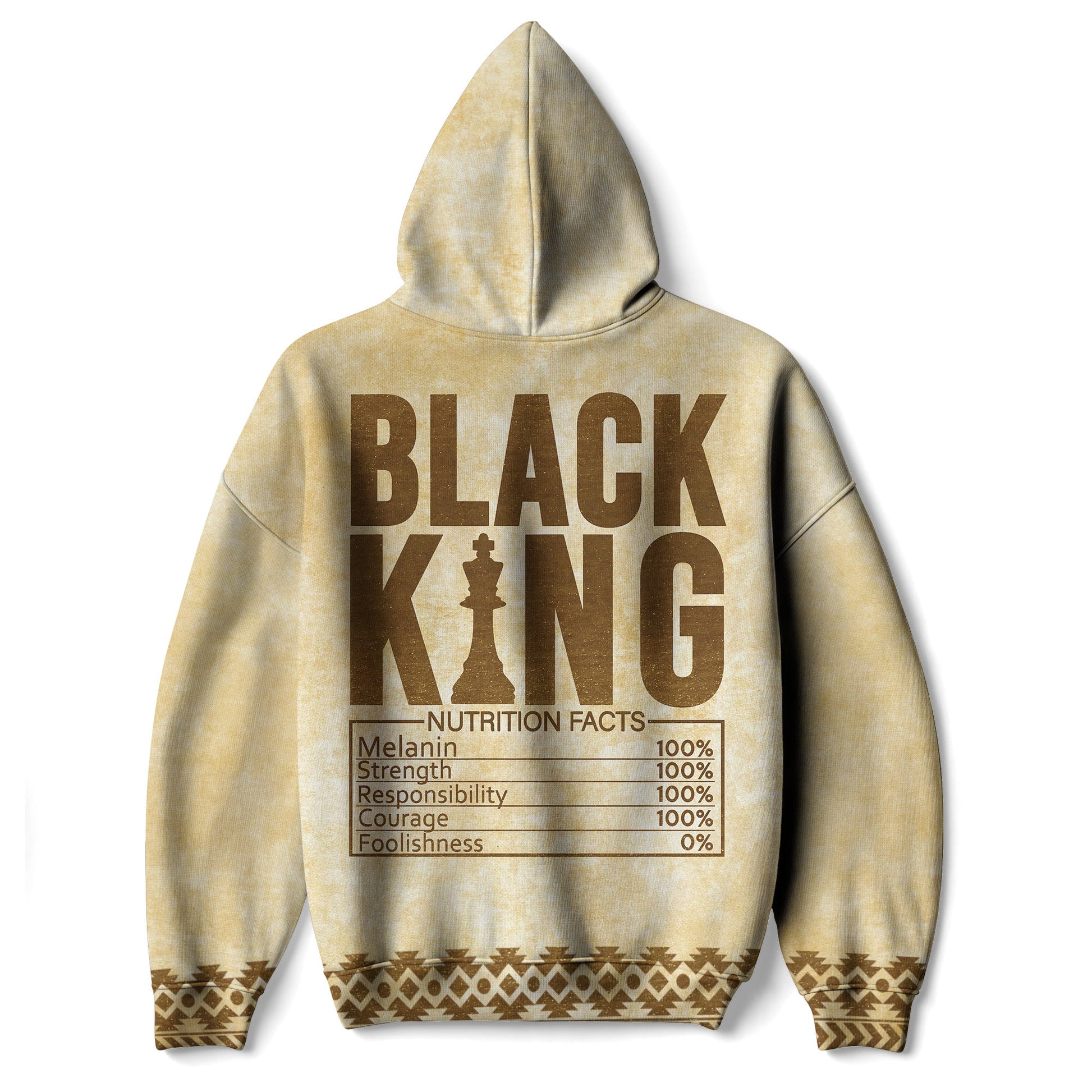 The Black King Nutrition Facts Hoodie is a creative twist on confidence — styled like a nutrition label, but packed with pride. Featuring ingredients like Strength, Wisdom, Loyalty, and Royalty, this hoodie breaks it down so there’s no doubt: being a Black King comes with premium, God-given ingredients.