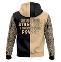 With a bold half-and-half design in black and gold, tribal-patterned sleeves, and commanding typography, this piece celebrates what brings us together. The front speaks loud with “Unity Is Power”, while the back affirms:
