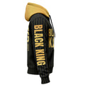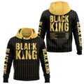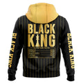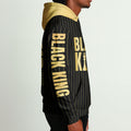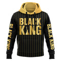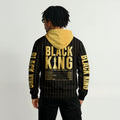 With “BLACK KING” printed in striking gold across the chest and a unique “Nutrition Facts” graphic on the back, this jersey breaks down what you’re made of — 100% strength, courage, and responsibility. The black and gold pinstripe design adds a refined, regal edge that commands attention.