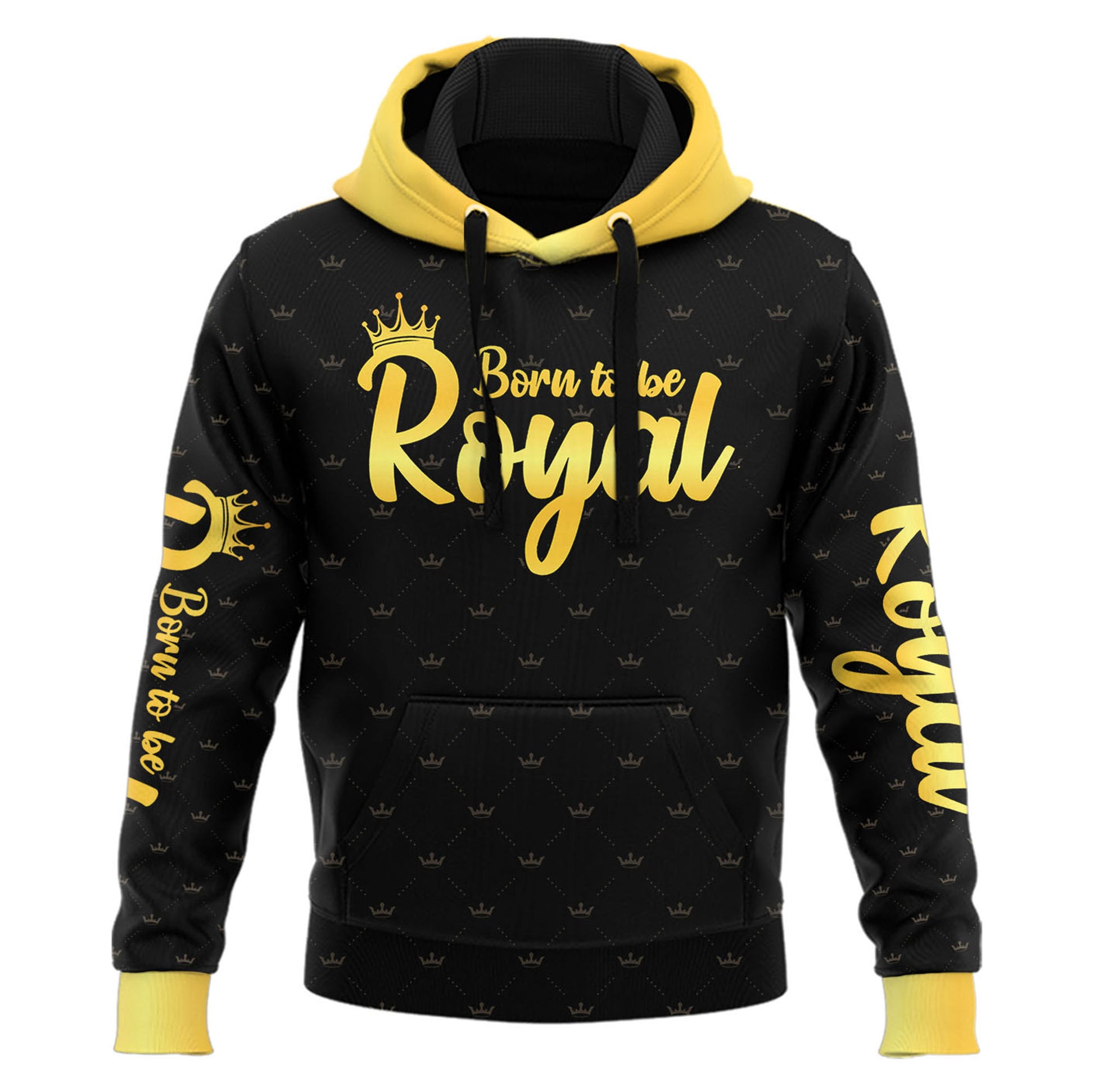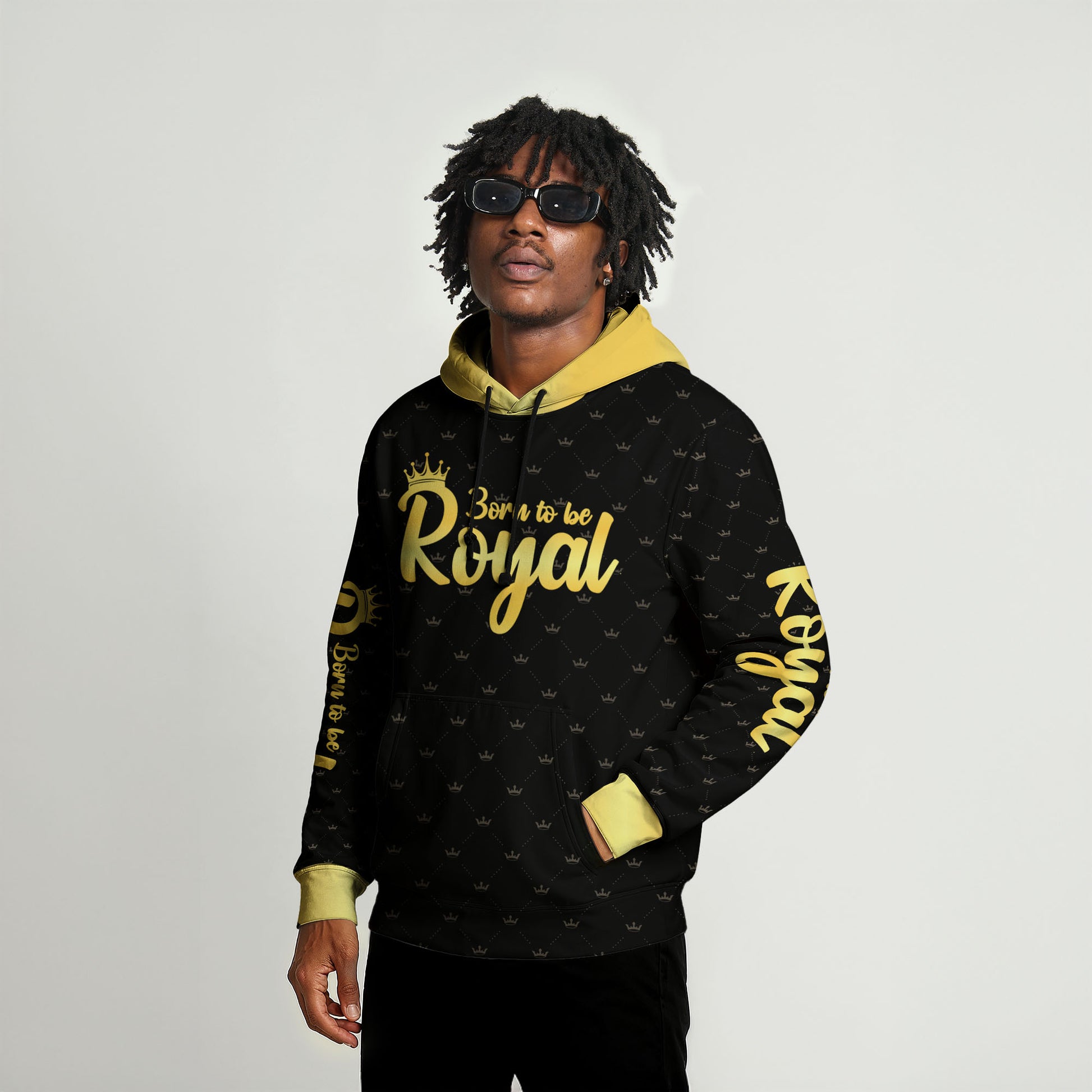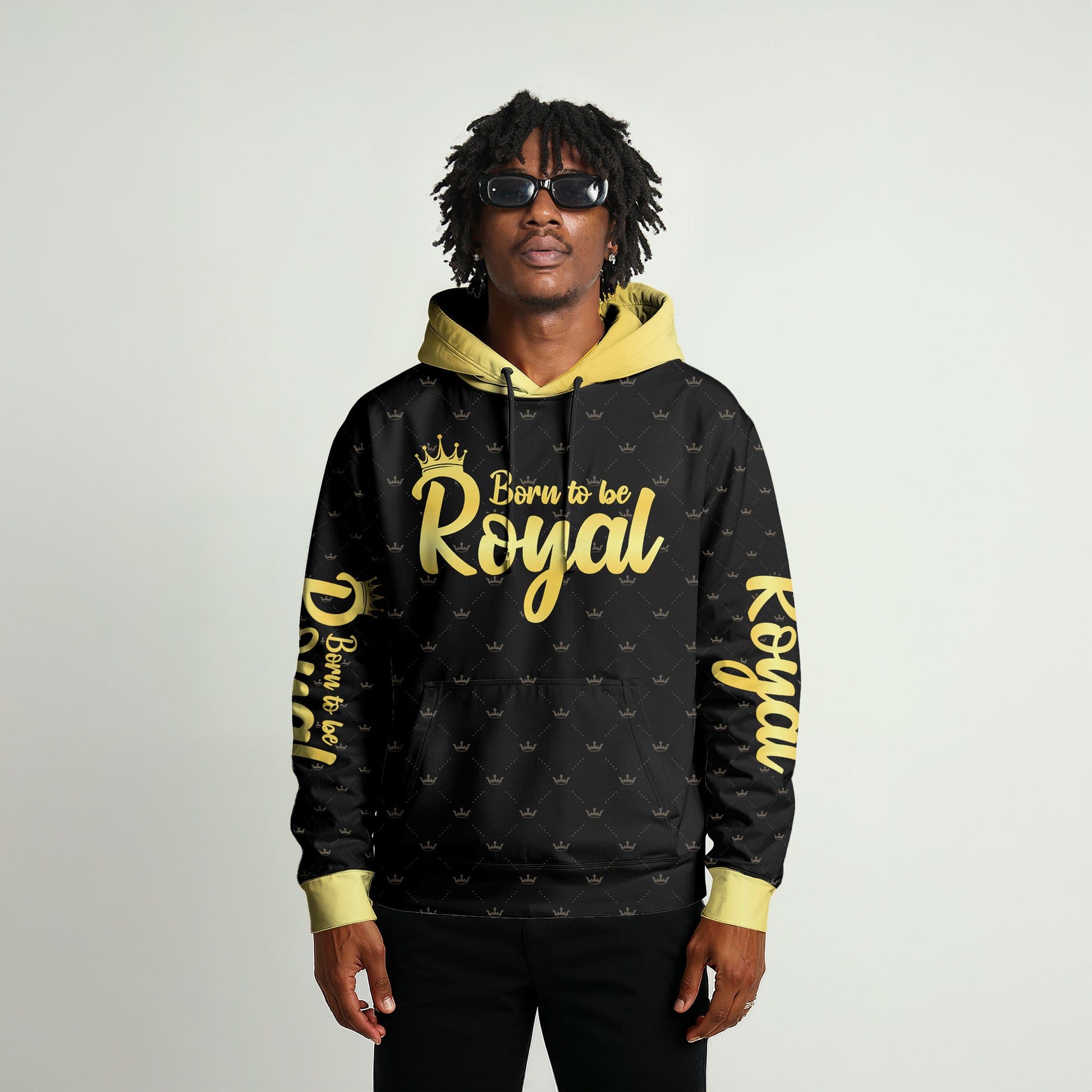 Front print: “STRONG. POWERFUL. CONFIDENT. KING. BLESSED. UNIQUE.” in gold
