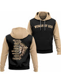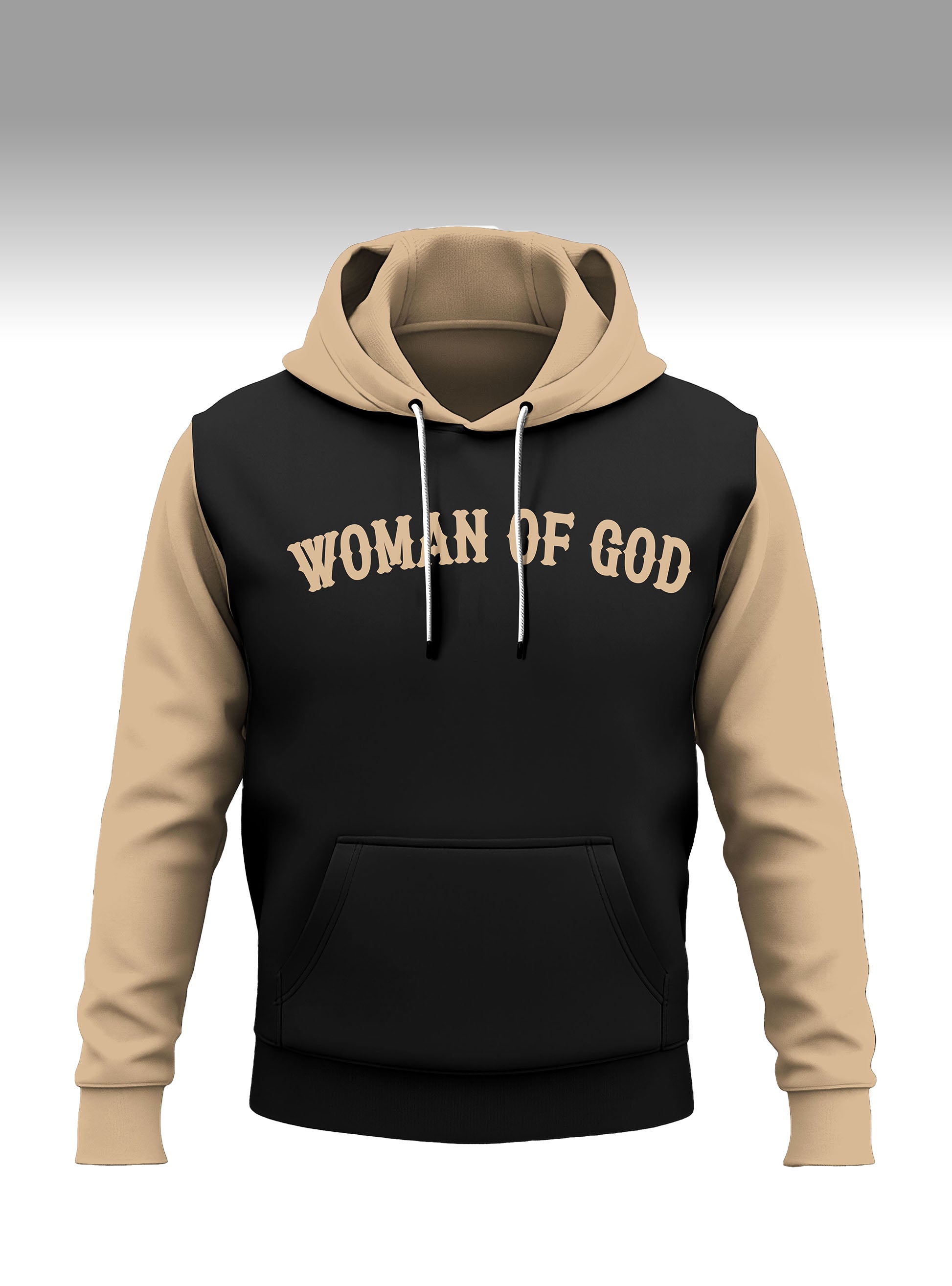 Front (Hoodie): Elegant āWOMAN OF GODā lettering across the chest ā a proud declaration of identity, grace, and strength in Christ.