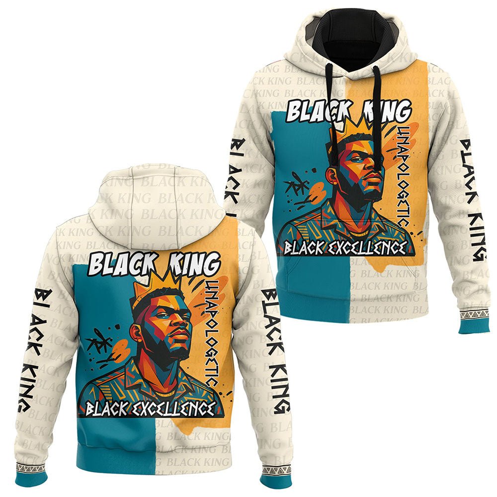 The “Black King Vibrance” Hoodie is more than comfort—it’s a radiant celebration of royalty, strength,...