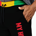 Pan-African accents in red, black, and green remind us of our cultural roots, while the athletic fit keeps your look sharp whether you're in motion or making a statement.