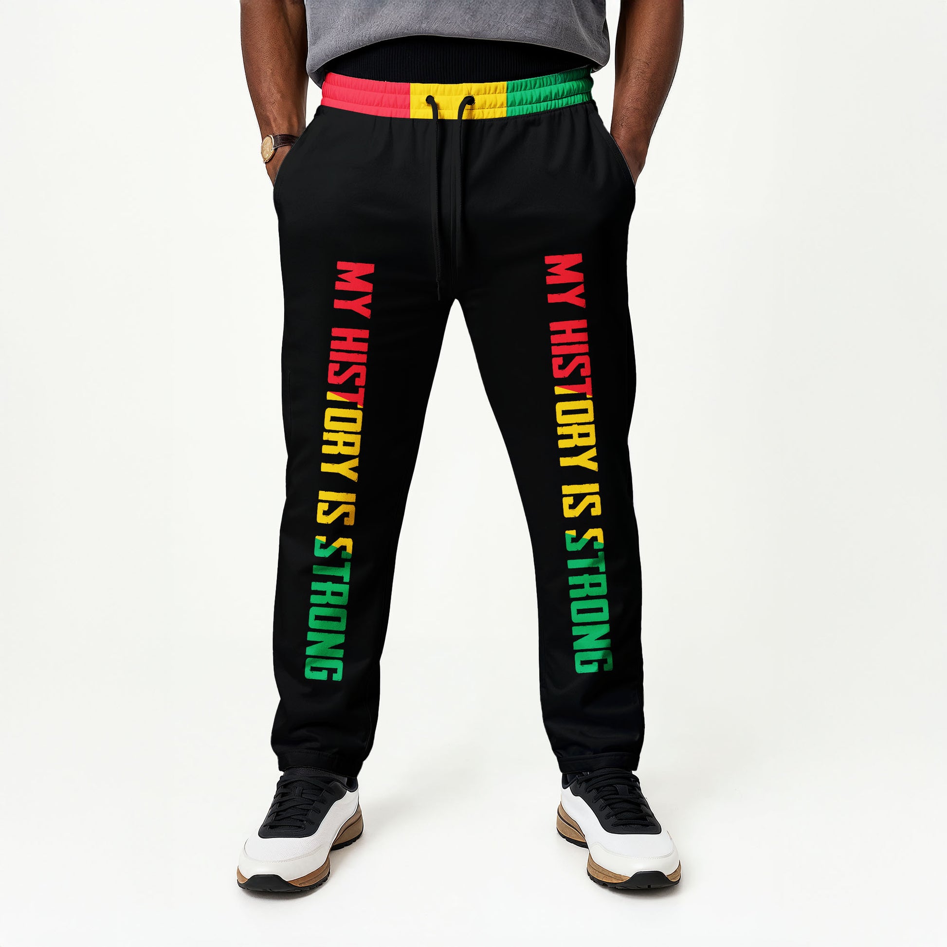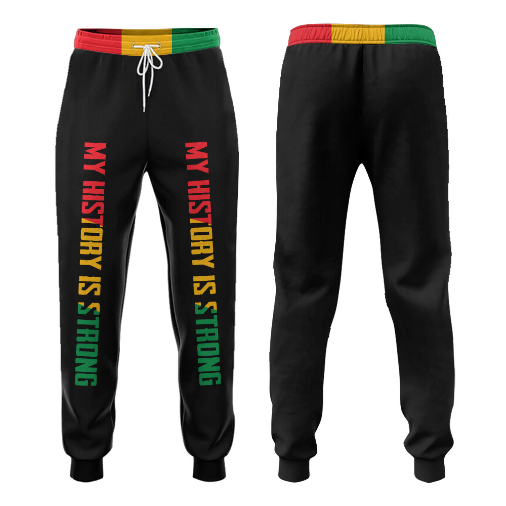 The My History Is Strong Joggers are a wearable tribute to the strength you come from. With “MY HISTORY IS STRONG” printed boldly down the leg in rich gold, these joggers honor the past while moving you forward — with pride, purpose, and power.