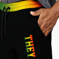 On the front, THEY NOT LIKE US blazes across the chest in red-gold-green gradient block letters—bold, proud, and unshakable. But the real story is rooted in the back.