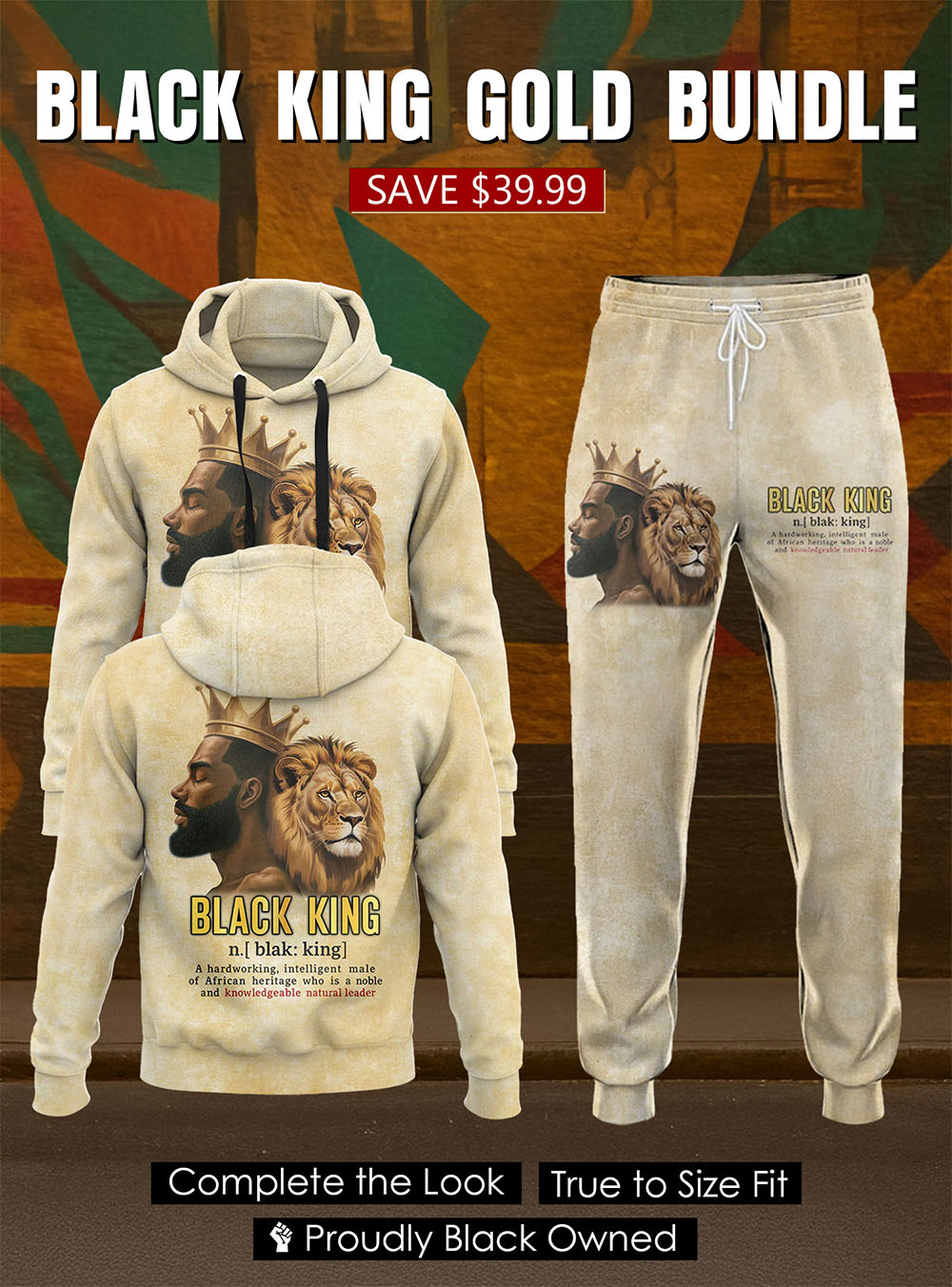 The “Black King Gold” Hoodie & Joggers Bundle is more than an outfit—it’s a bold...