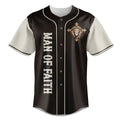 Front (Jersey): Classic baseball style with bold “MAN OF FAITH” lettering — a proud declaration of strength, devotion, and identity in Christ.