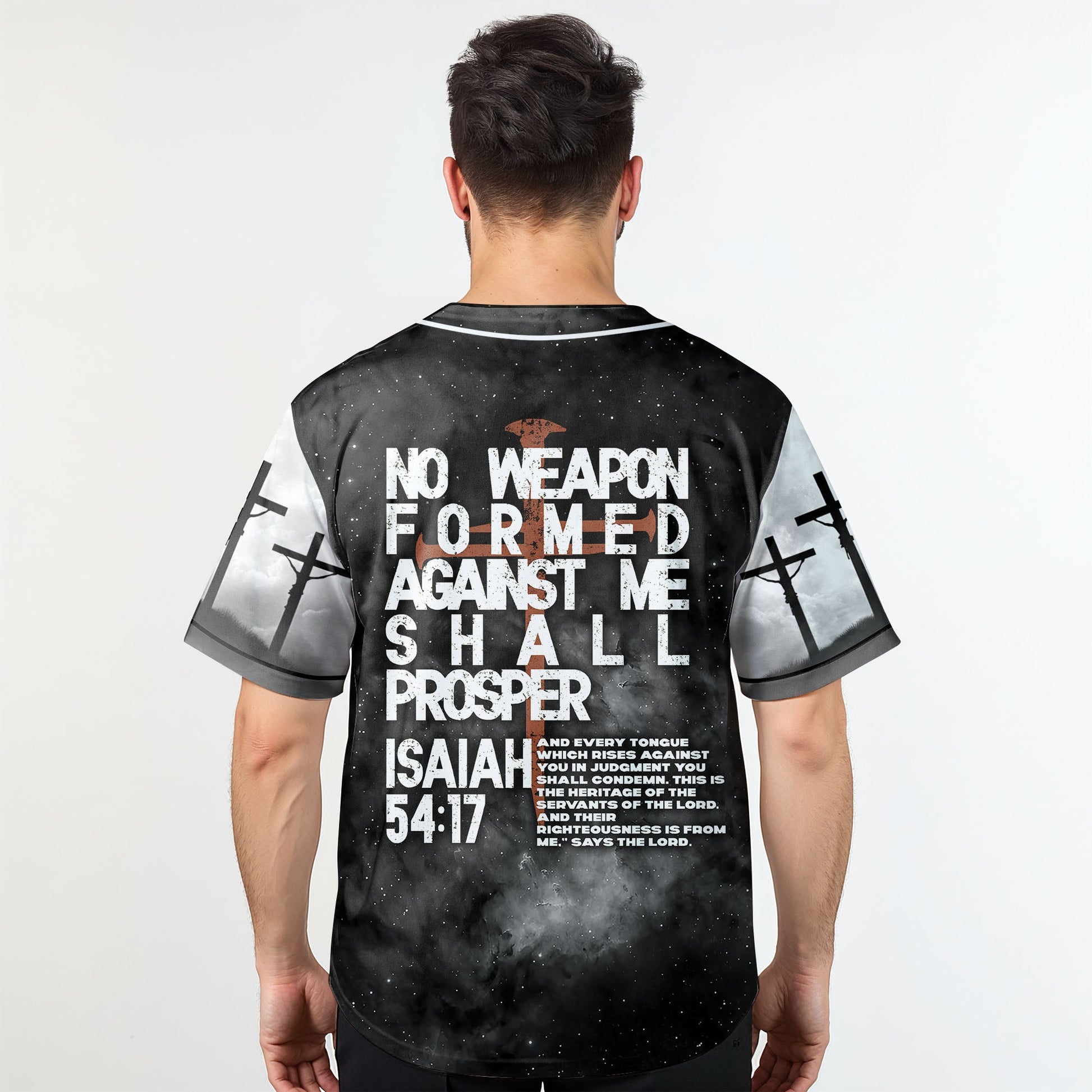 The “No Weapon” Christian Baseball Jersey brings classic sports style together with unshakable faith. Inspired by Isaiah 54:17, it boldly declares that no weapon formed against you shall prosper. Made with breathable, high-quality polyester fabric, this jersey keeps you cool and comfortable whether you’re on the field, at church, or out in the streets. With its relaxed fit, button-up design, and bold faith message, this jersey is more than apparel—it’s a daily reminder to walk in God’s protection and victory.