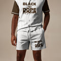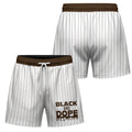 A clean white pin-stripe body meets rich mocha sleeves, framing the front flex BLACK AND DOPE—dripping confidence, sweet like chocolate. Rotate it and the back clears up any questions: